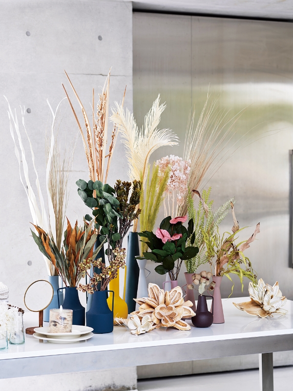 様々なプリザーブド・ドライフラワーを組み合わせて、いつものショップをワンランクアップ。