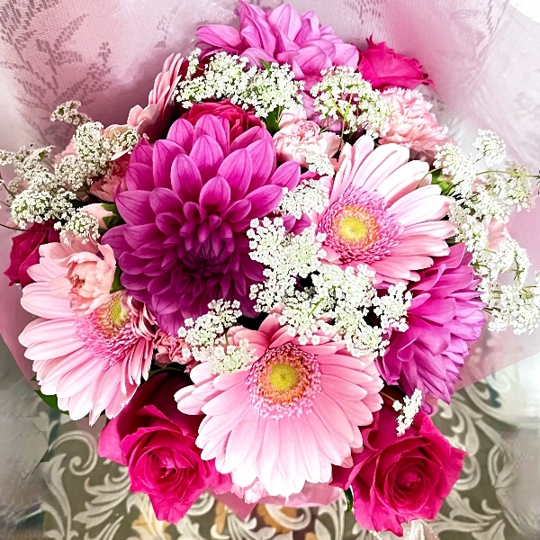【生花】ダリア(ダークピンク系) エタニティシャインなど 50cm程度 ※商品説明お読みください。【OT】 |