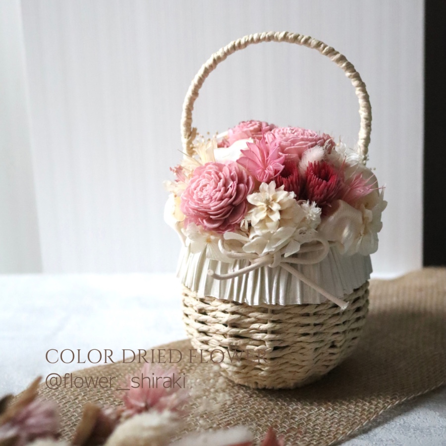 プレゼントにピッタリのバスケットフラワーアレンジメントができました。
