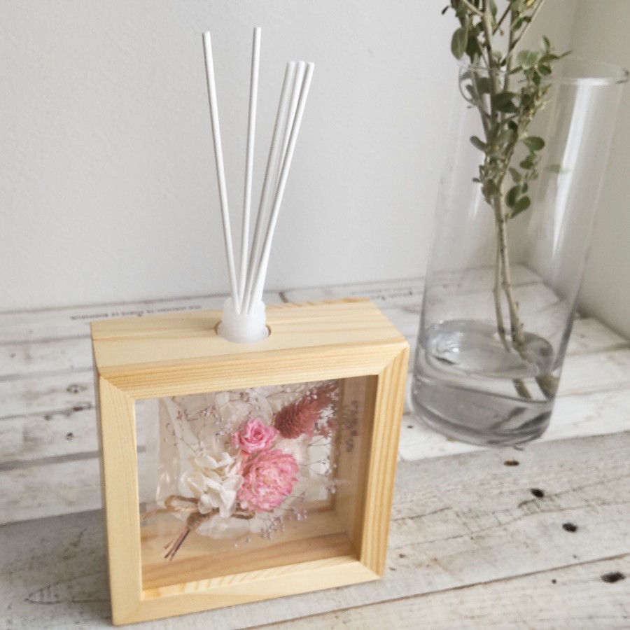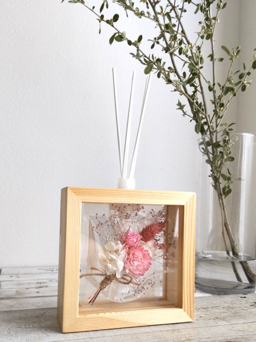 そんなリードディフューザーをフレームアレンジ風に好きなお花と香りで作れるアイテムが新登場!