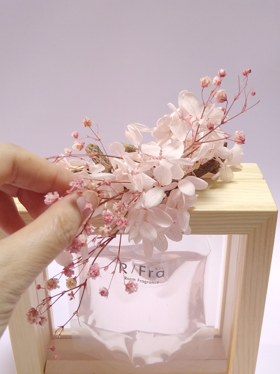 フレグランスの液もほんのりピンクなので、春爛漫になりました。