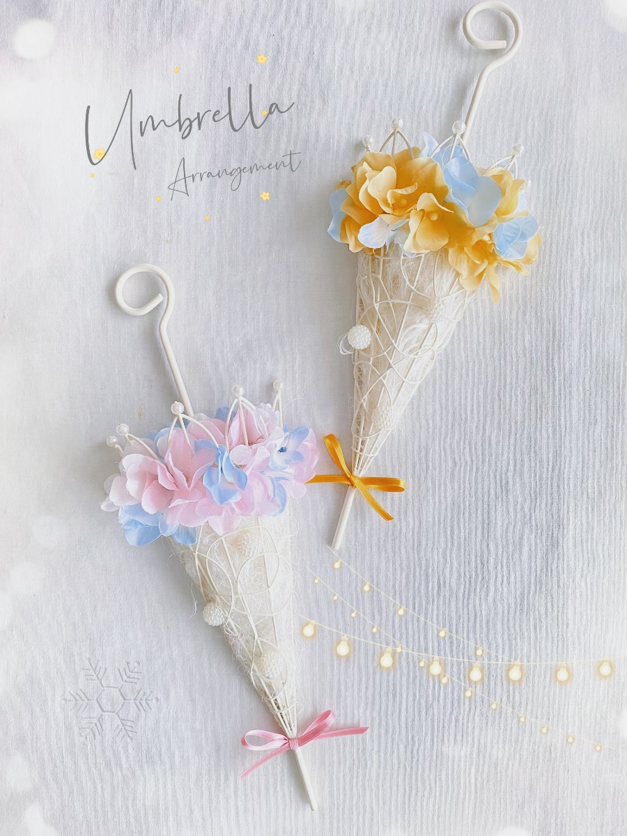 あじさいを傘のフリルに見立ててアレンジしました。