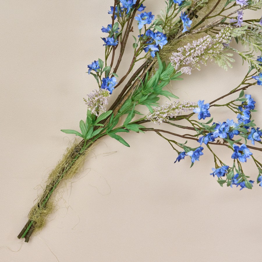 暑い季節になると多く出回る青い花も、枝についたものはなかなかないので、まさにアーティフィシャルならでは。