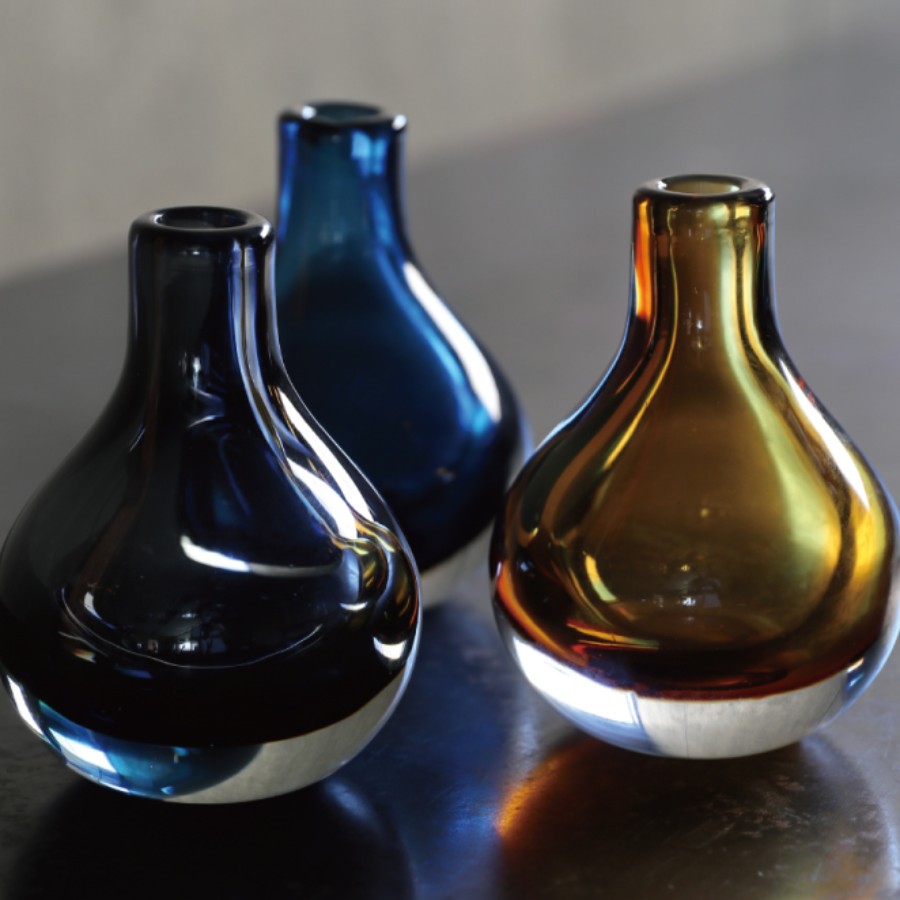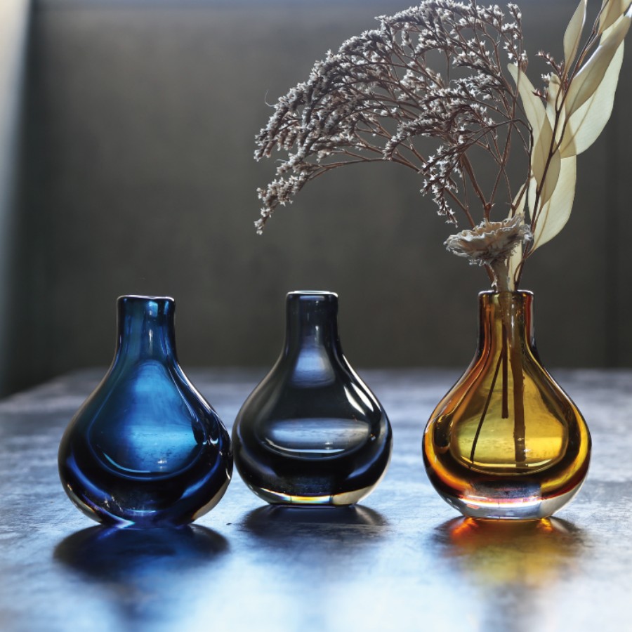 角度によって色のついた部分と透明な部分のバランスが変化して見える不思議なフラワーベース。