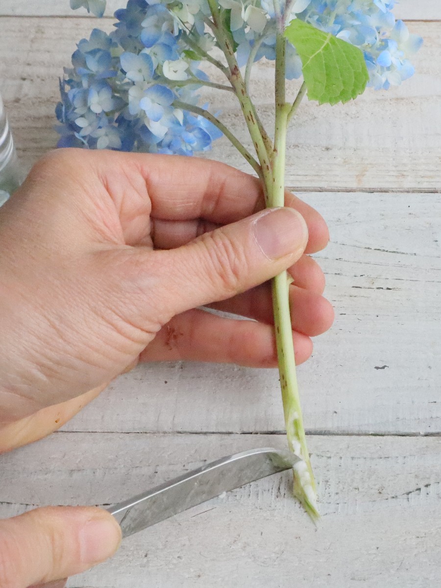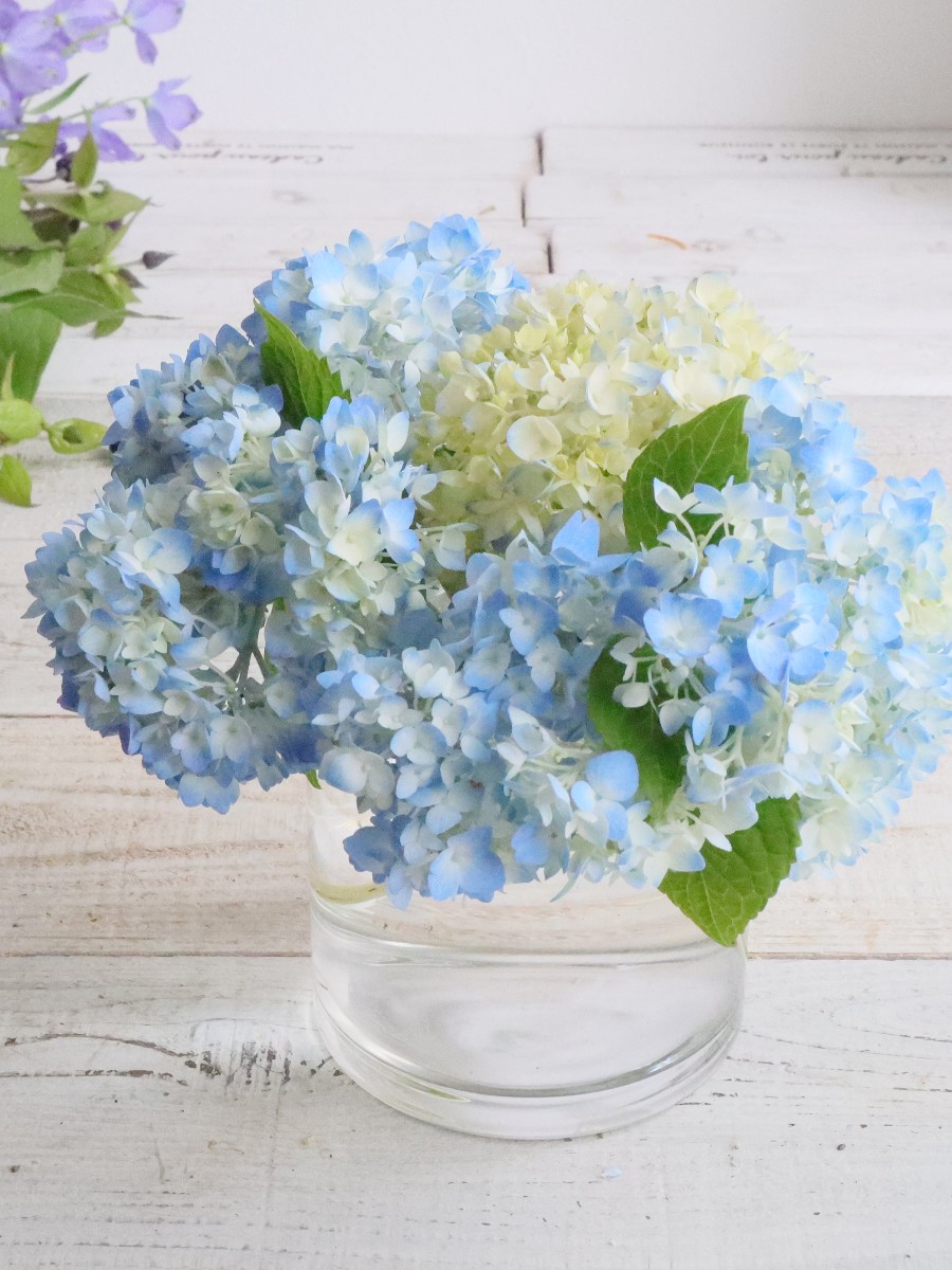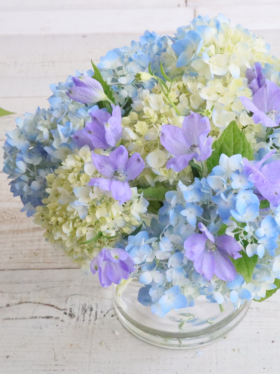 アジサイとクレマチスの小さなアレンジ