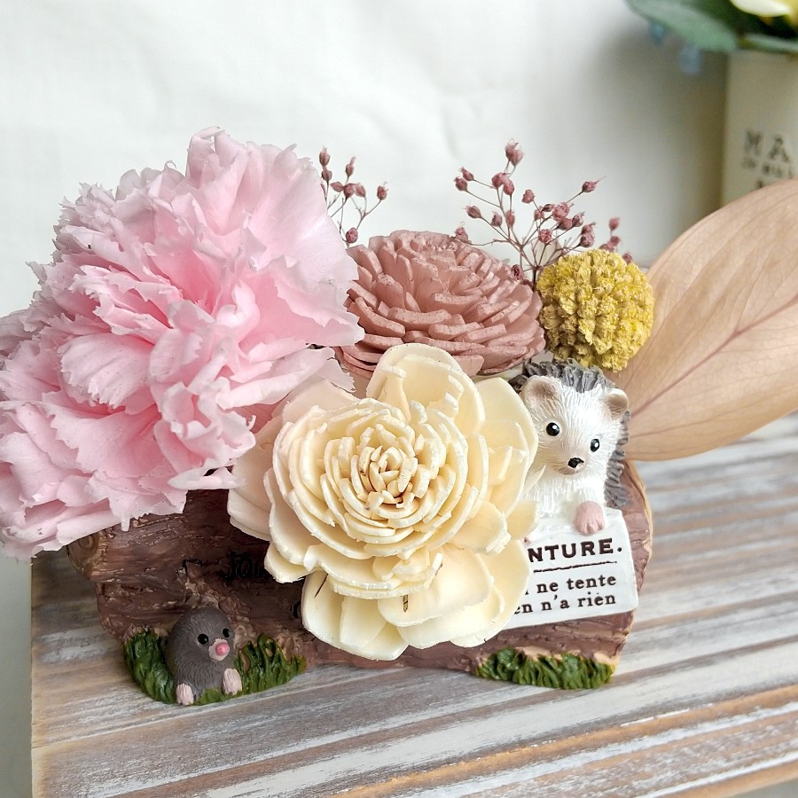 プリザーブドフラワーのカーネーションを使用しているので、