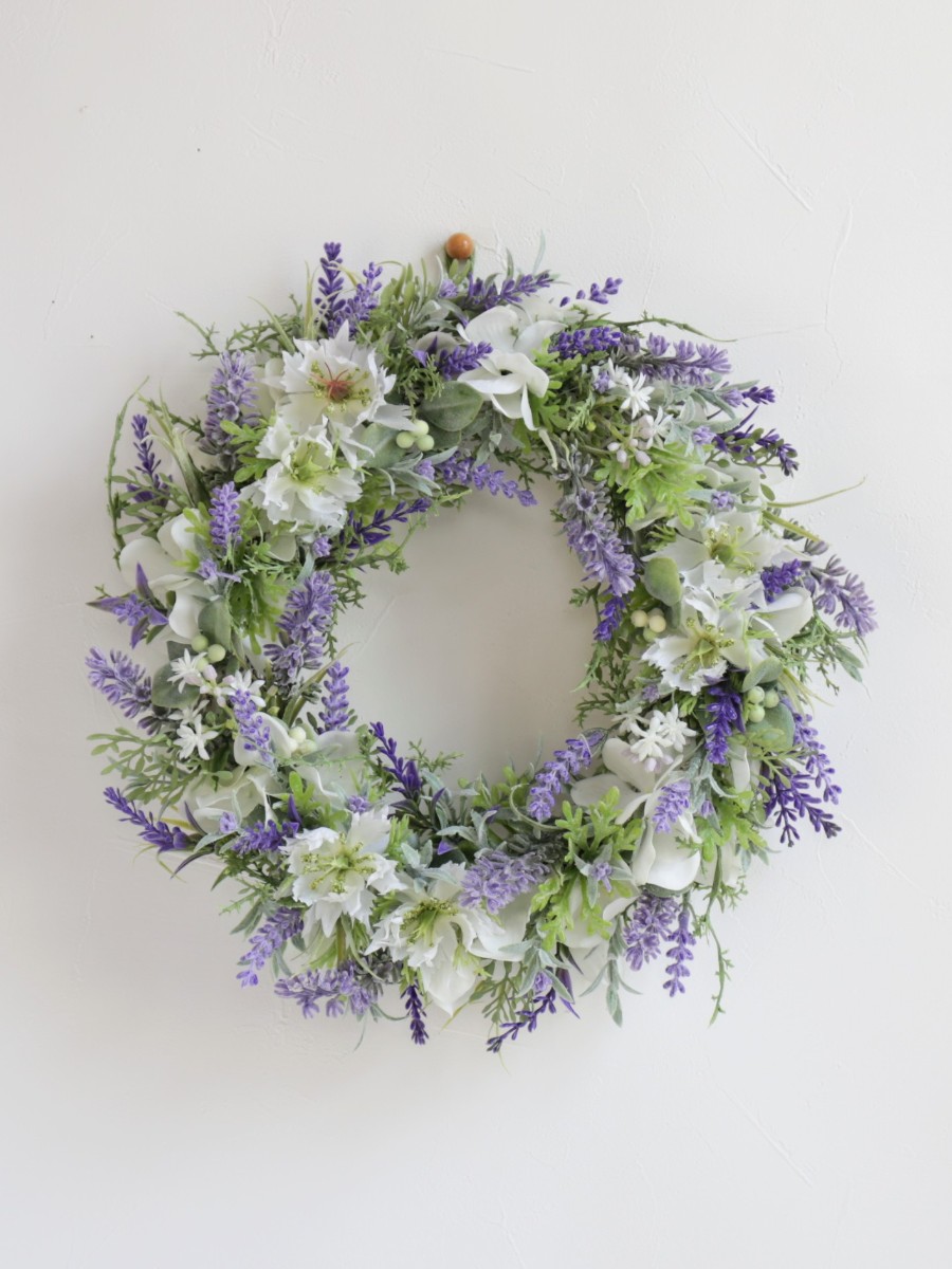 ラベンダーリースはたくさんの草花を丁寧に重ねます。