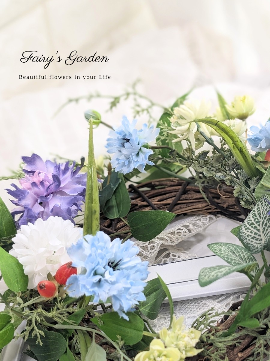 夏の草原のような、爽やかなリースです。