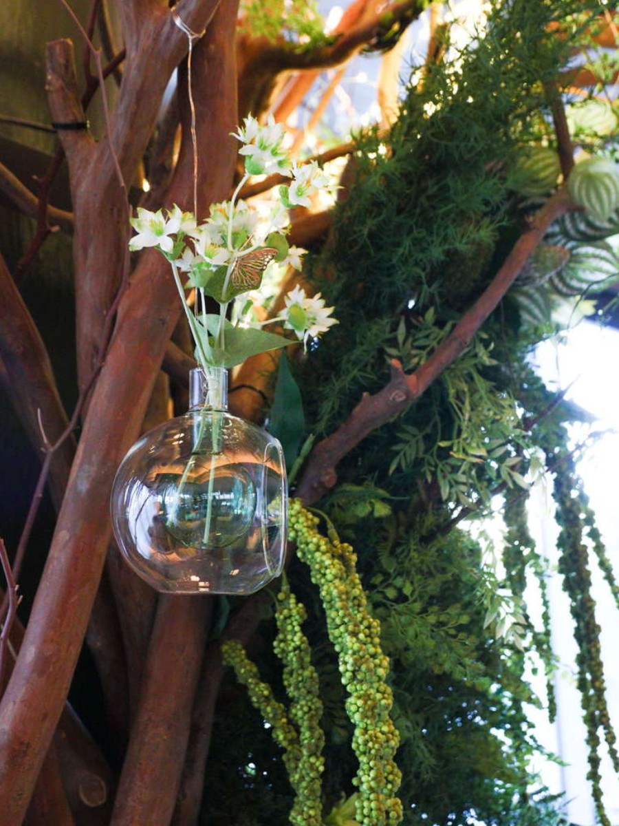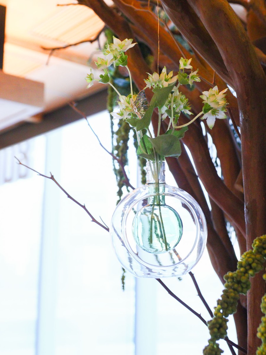 グリーンをふんだんに使い、蝶々のアクセントがきらりと見えるピッツェリアの空間装飾。