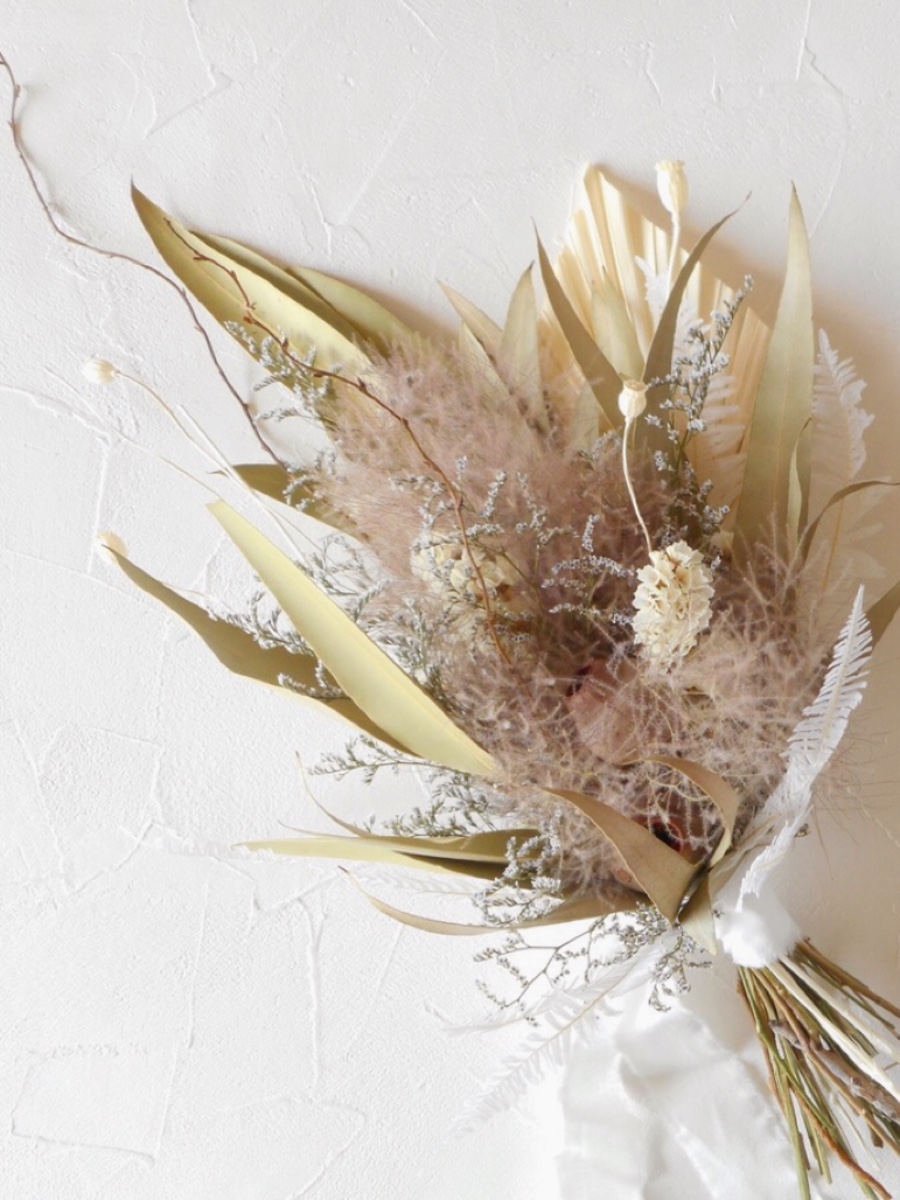 旬のスモークツリーをナチュラルに、そしてカッコよく飾れるブーケスワッグです