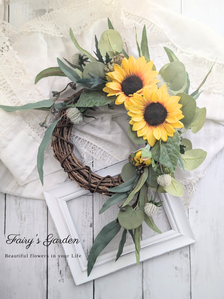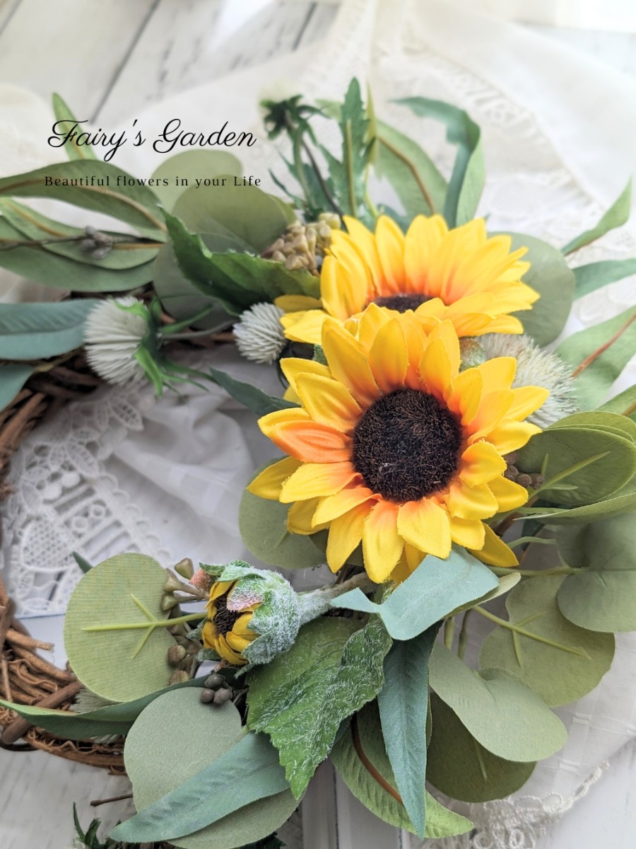 元気カラーのひまわりも、子供っぽくならずに飾れます。