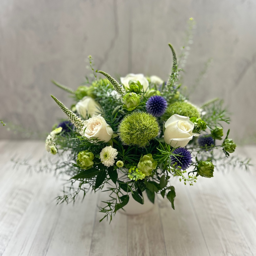 よく、ルリダマアザミの青をアクセントに。