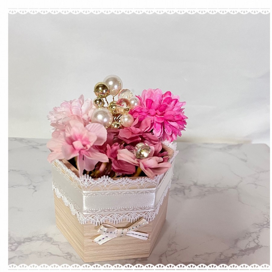 ピンク色で可愛くマムとアジサイでまとめてみました