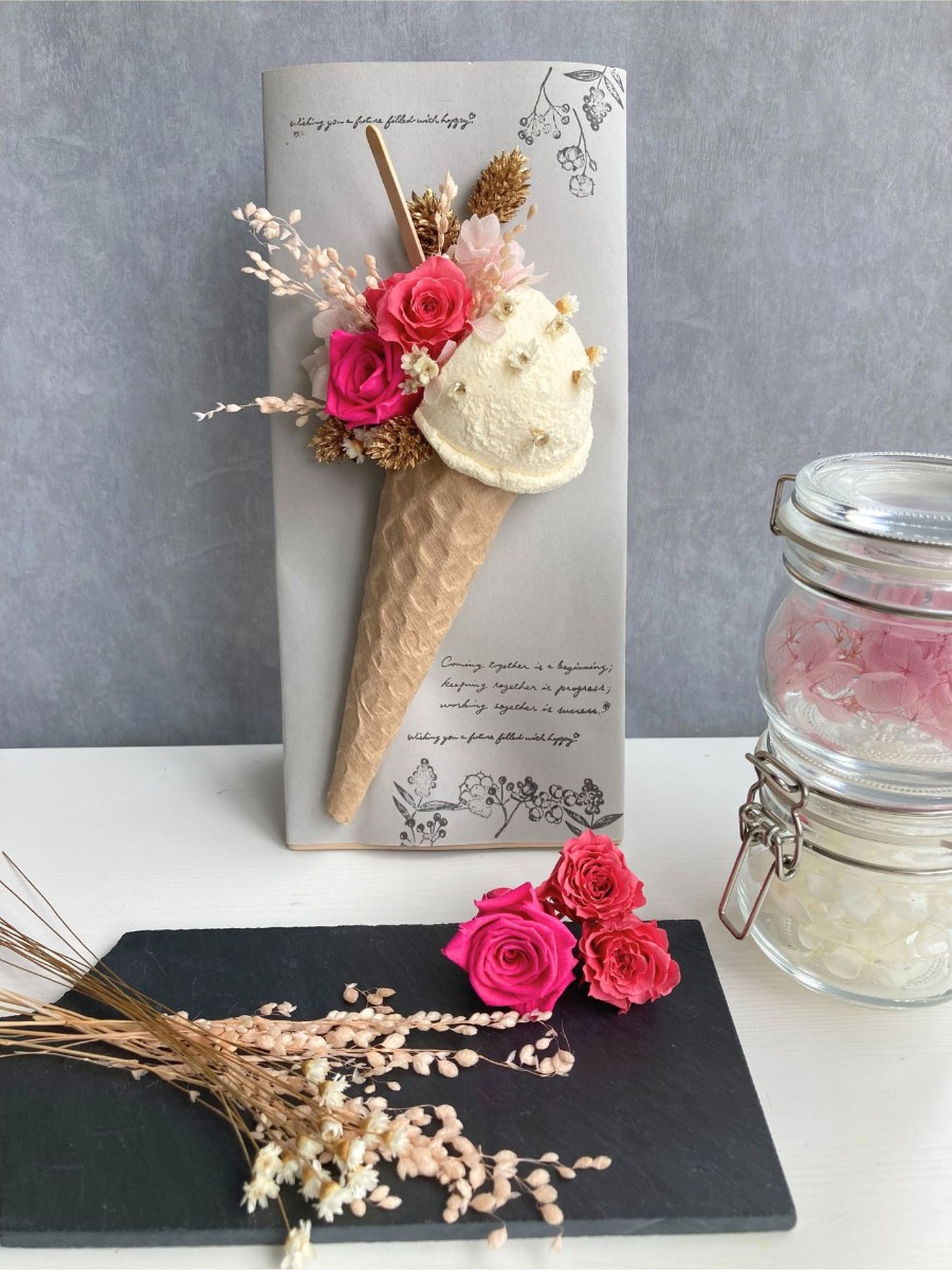 アイスクリームにビビッドなプリザーブドフラワーをプラス!