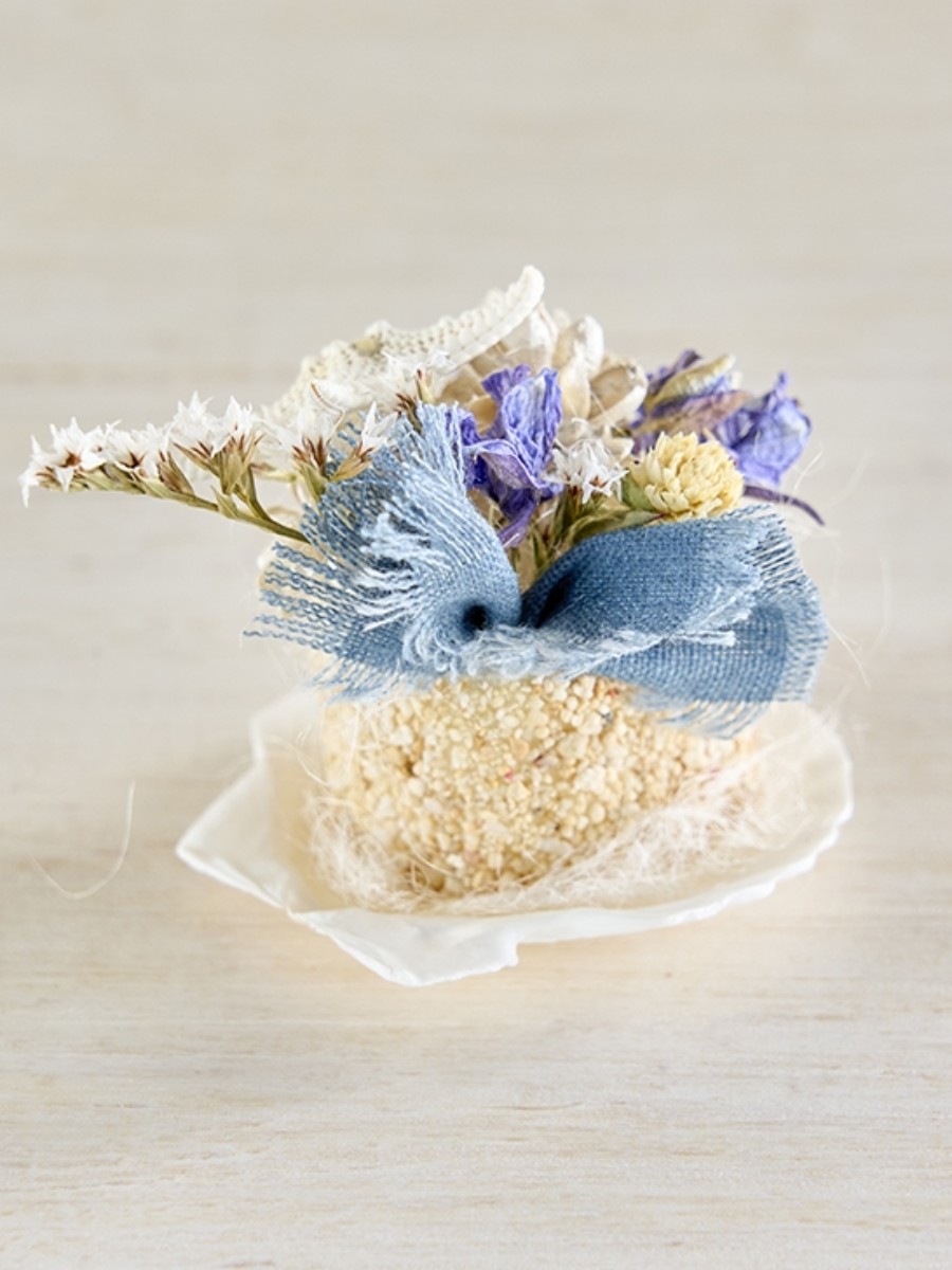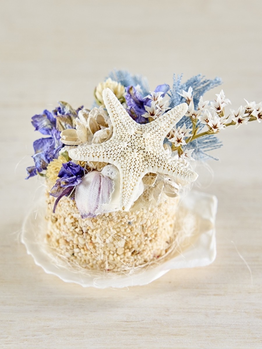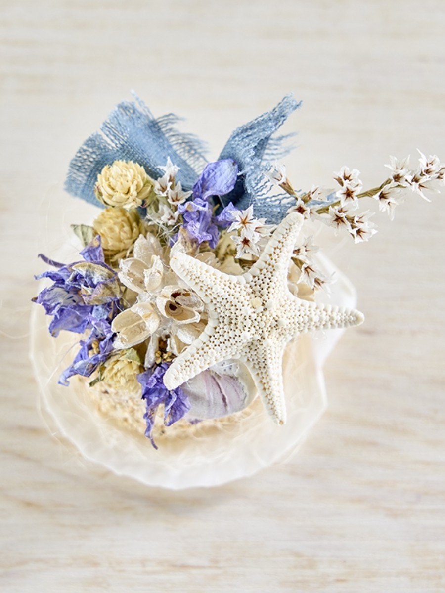 隙間にお好みの花材や好きな貝殻(シェルミックス)を貼り付けます。