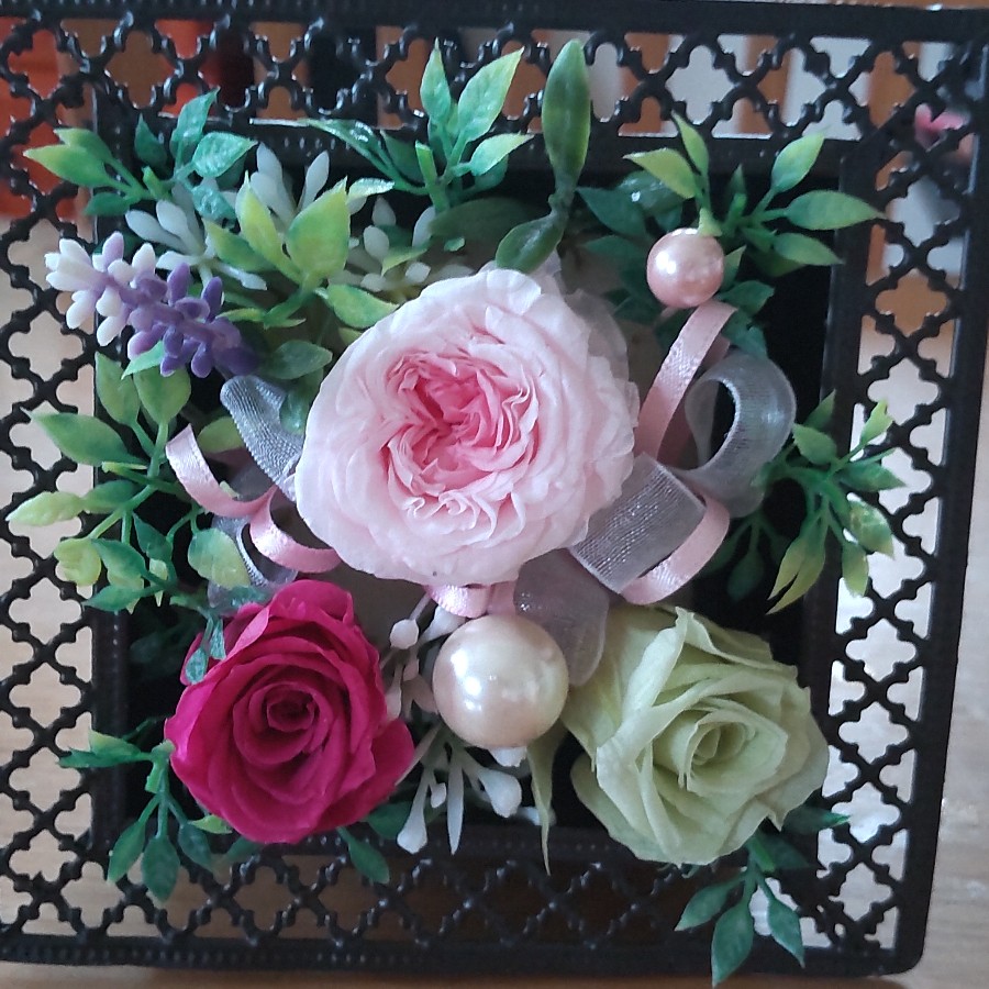 アイアンを使用して、プリザーブドフラワーを作りました。