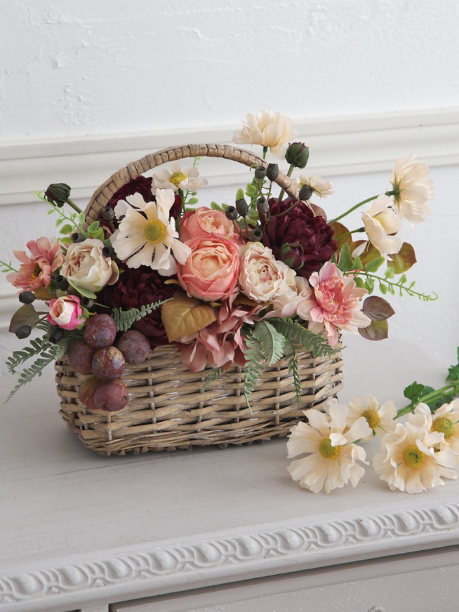 秋らしい色合いのお花や実を詰め込んだフラワーバスケットです。