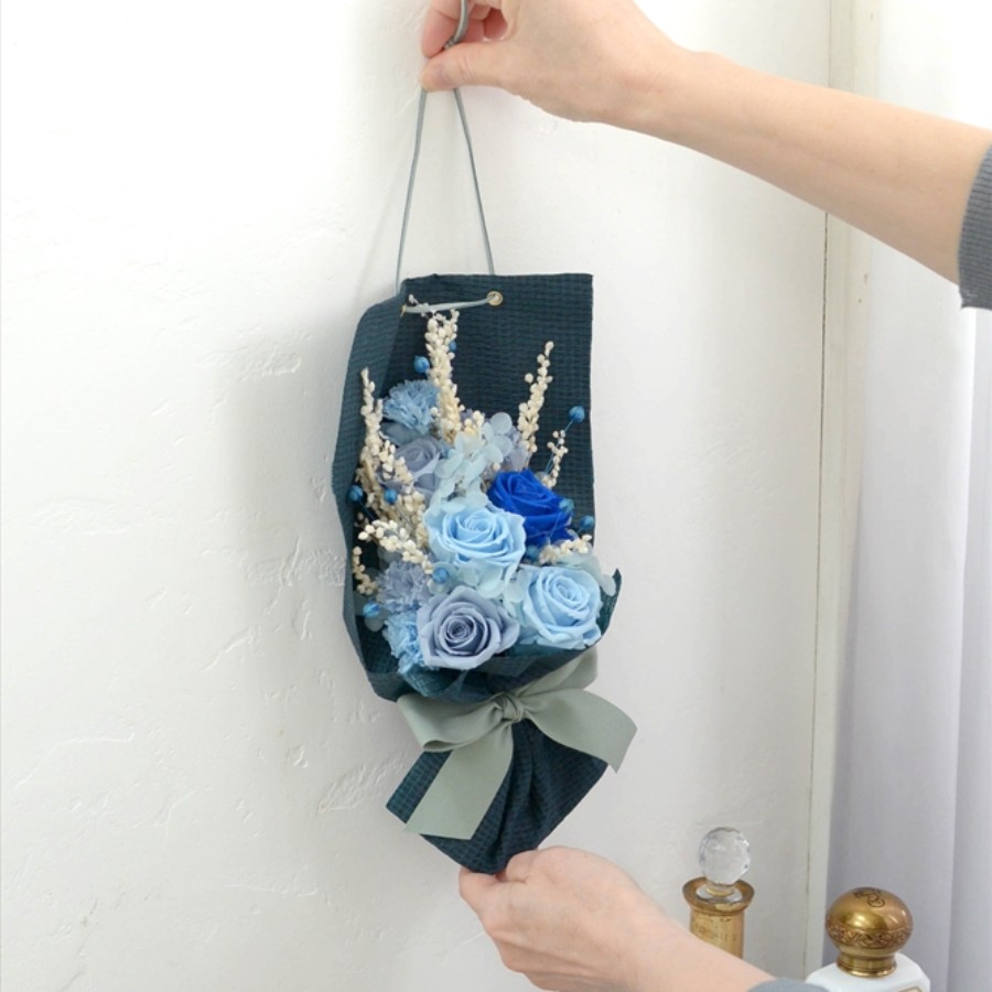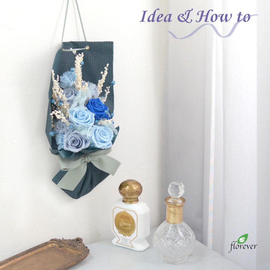 花束ギフト(父の日etc)のご提案です。ラッピングをほどかず、そのまま壁掛けとして飾っておけます。
