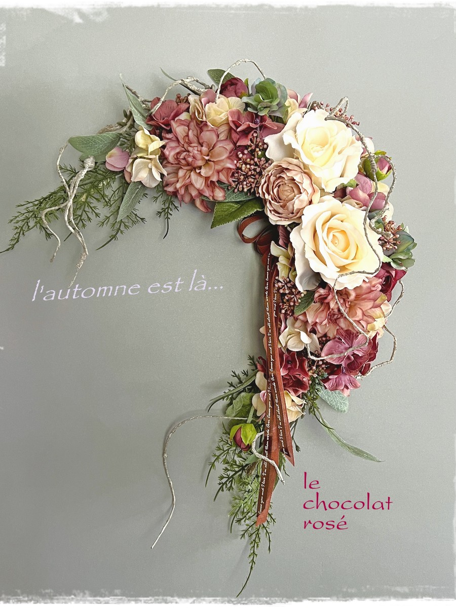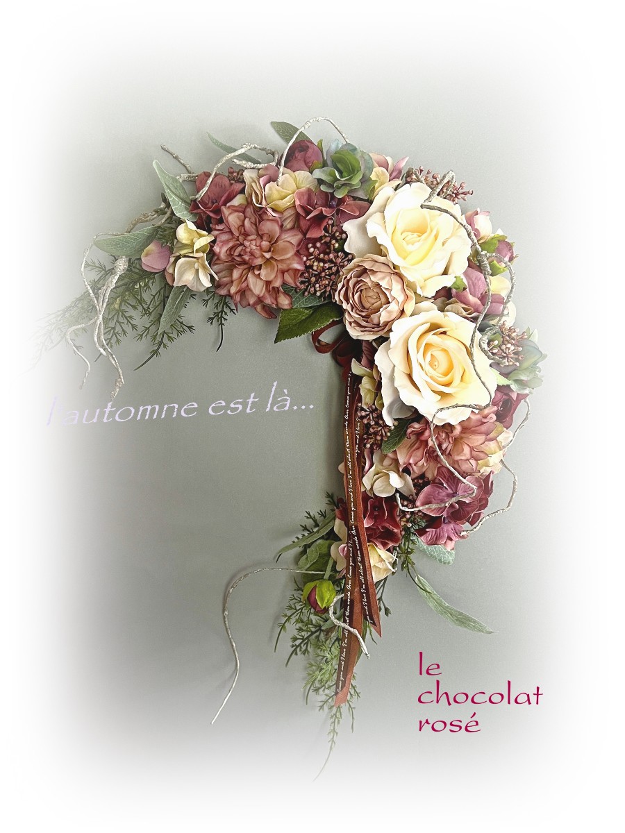 バニラクリームの薔薇に、モーブショコラのダリアや