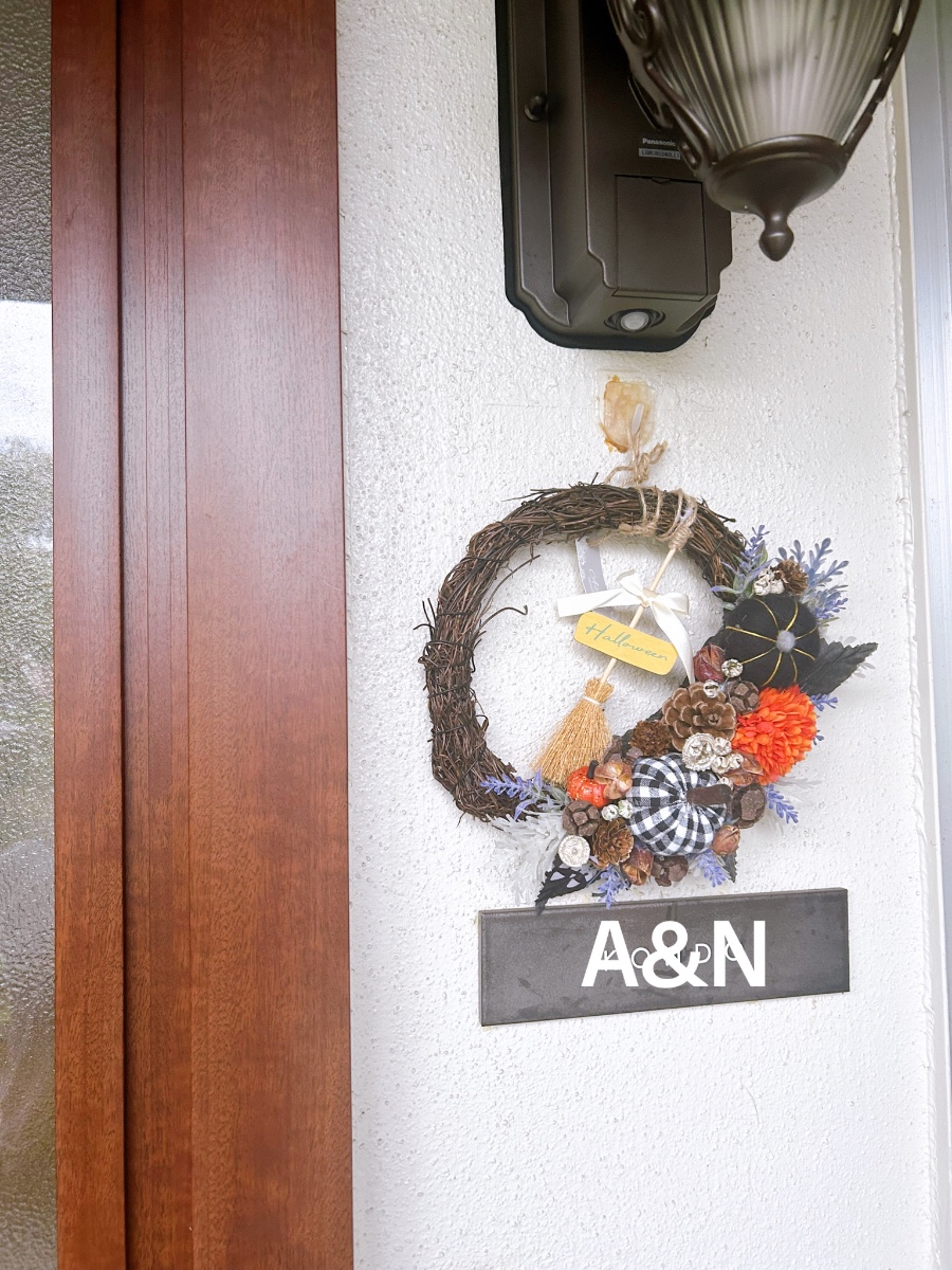 少し、暑さが和らいで、店頭にはハロウィングッズが並び始めました。造花と木の実とパンプキンのグッズを使い、可愛らしく仕上がってます。