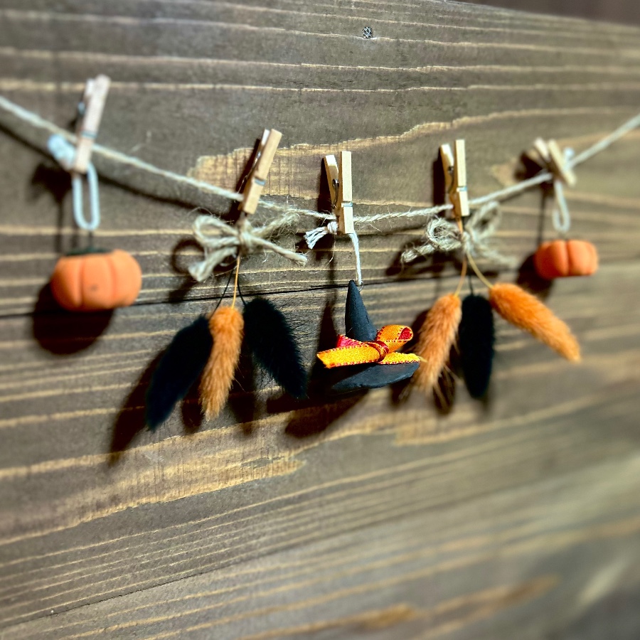 樹脂粘土のかぼちゃと魔女の帽子を