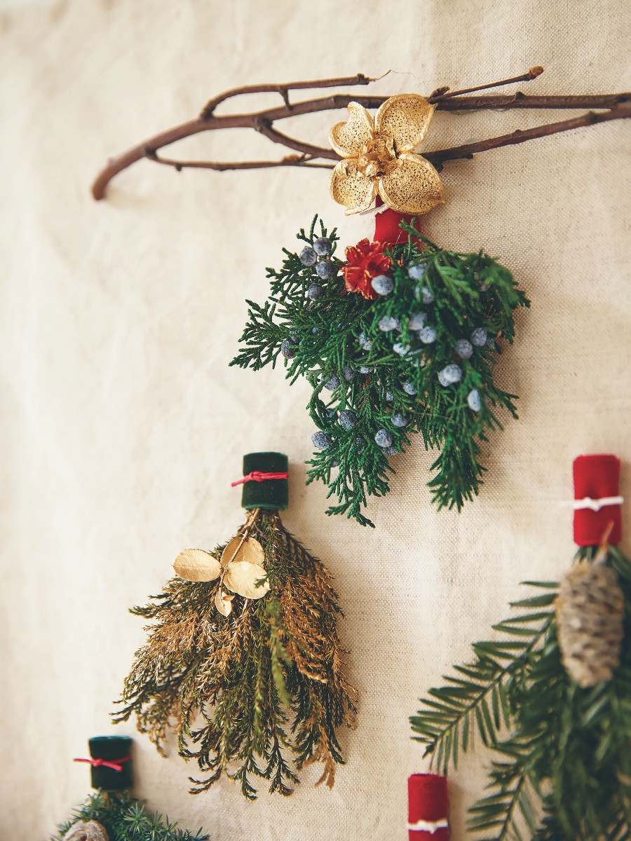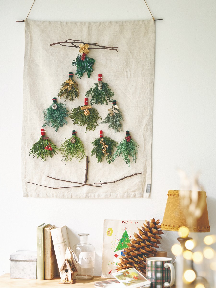 素材それぞれの表情が楽しめる、省スペースでも飾れるクリスマスタペストリー。