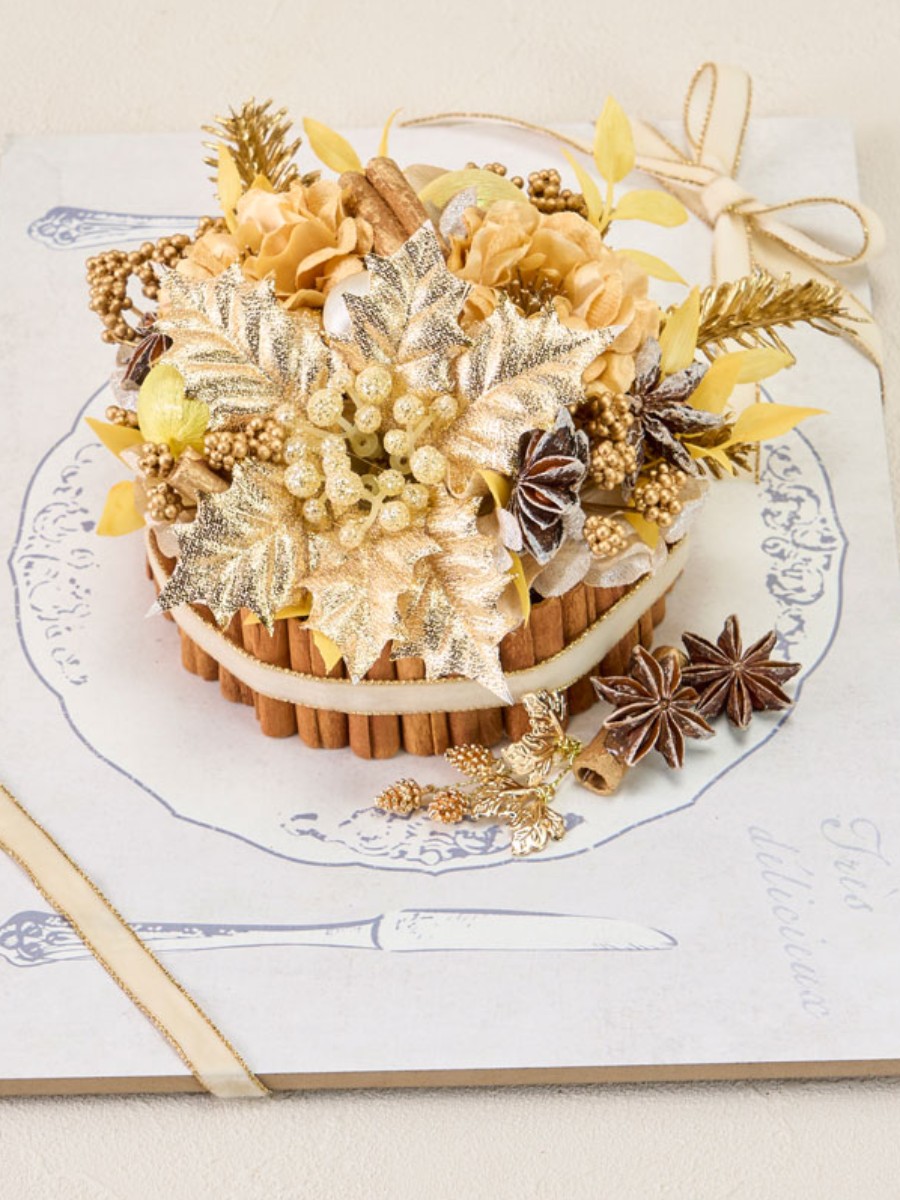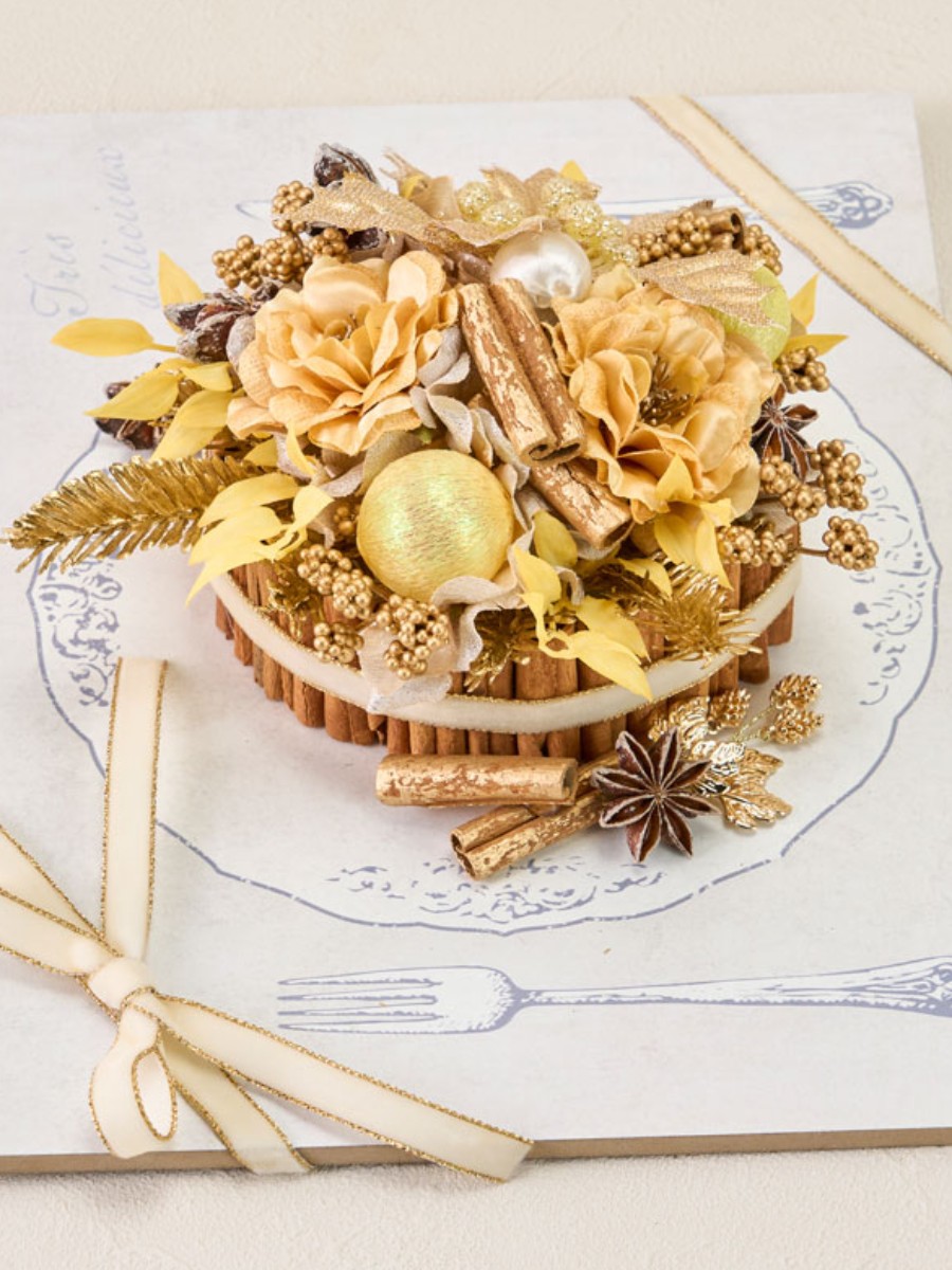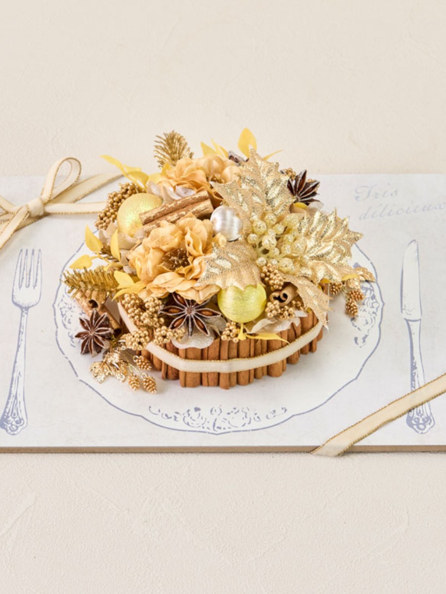 今年のクリスマステーマカラー「ハニーイエロー」に色合わせし、こっくりとしたはちみつ色のケーキをイメージしています。