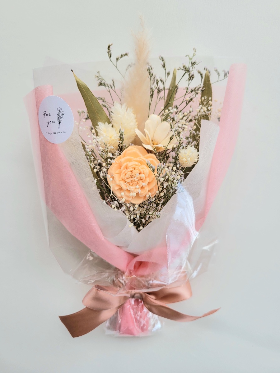ドライフラワーの花束は、プレゼントに添えるのに大活躍です。