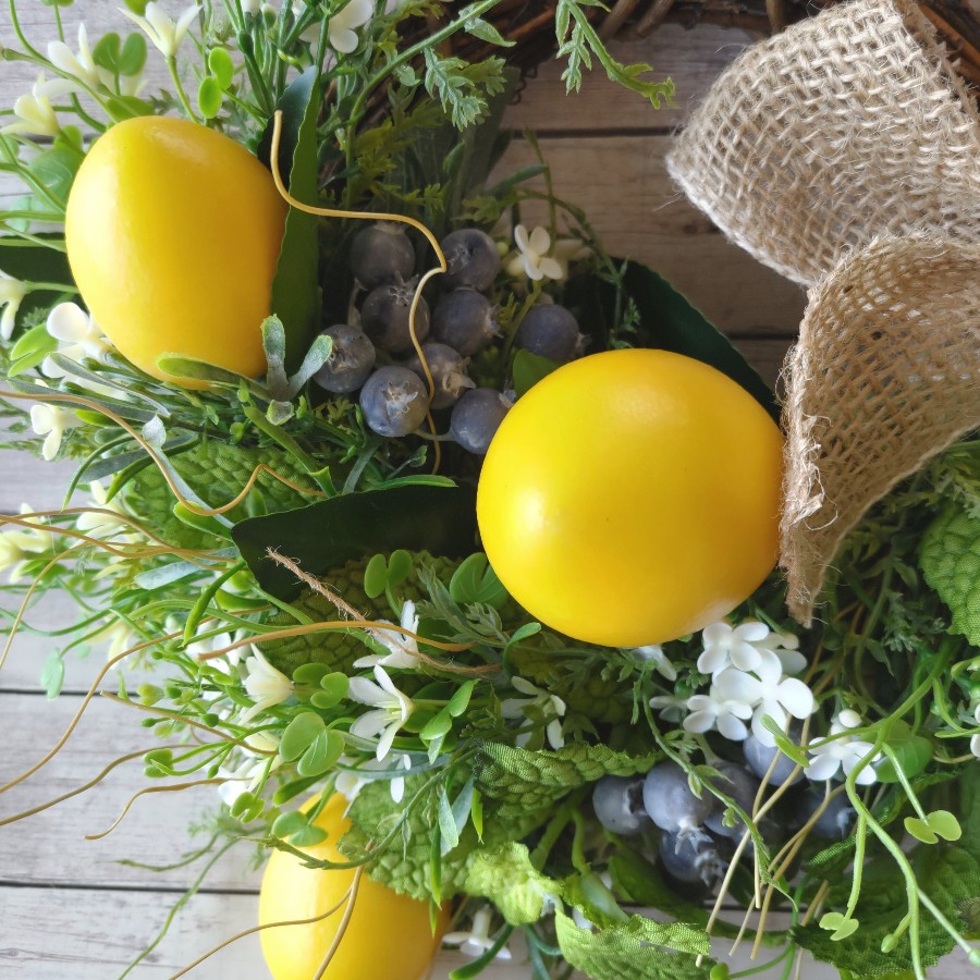鮮やかなイエローのレモンと、色んな種類のグリーンを合わせた爽やかなリースに仕上げました。