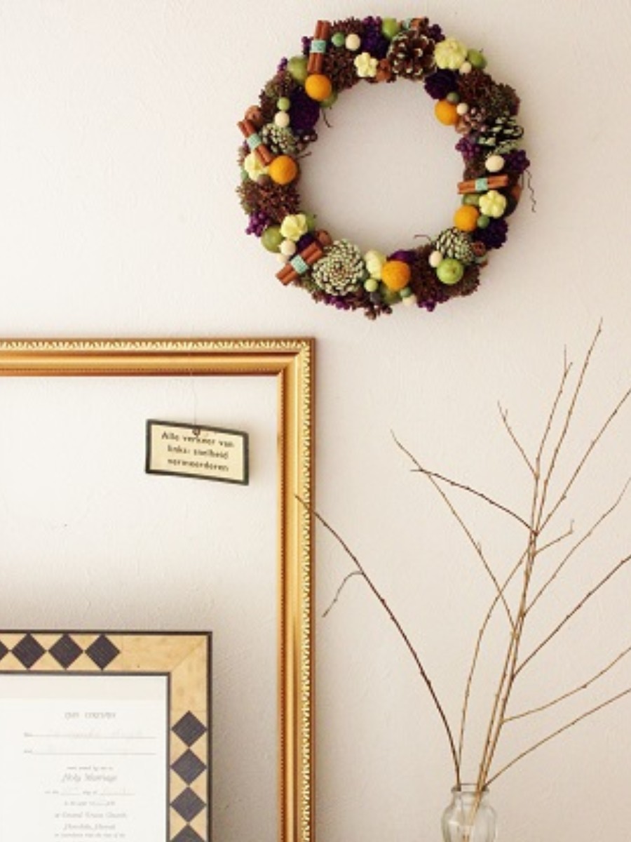 どなたでも参加できる毎月の1Dayリースレッスンでは様々なタイプのリース作りを楽しんでいただけるような内容にしています。講座の体験レッスンとしてもご利用いただけます。