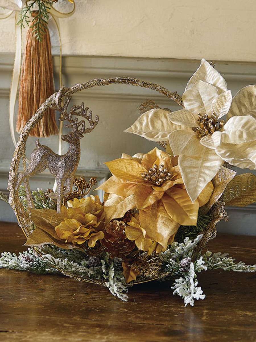 今年のクリスマスのテーマカラー「ハニーイエロー」のポインセチアを使った