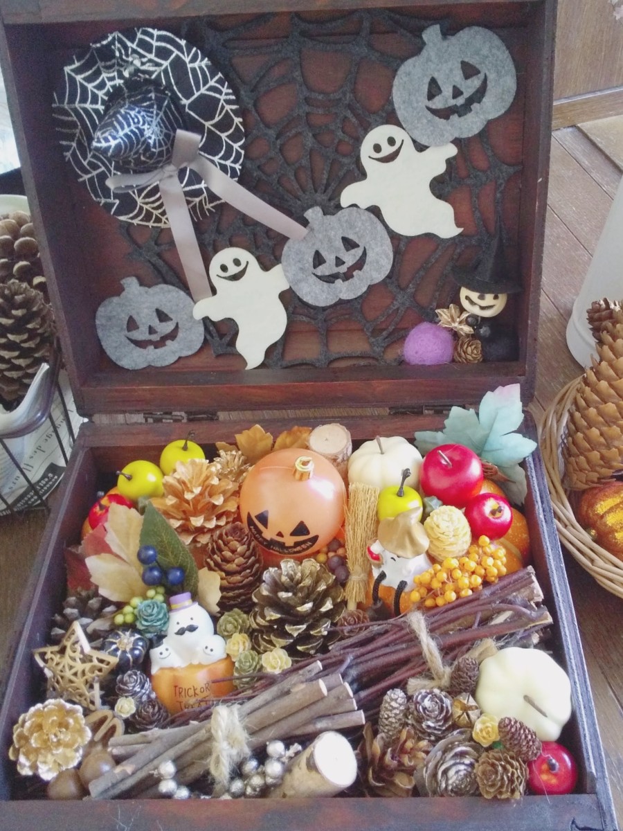 閉じたトランクケースをお好きな場所でお好きな時に開いて、いつでもどこでも、ハロウィンの雰囲気をお楽しみください。