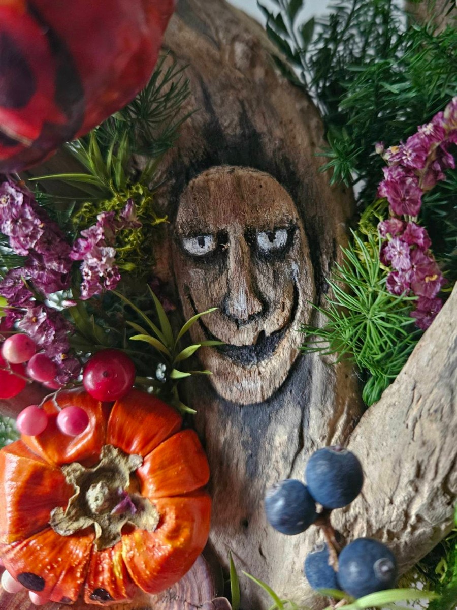 流木を組合せ、深い森を彷徨うジャックをモチーフにした壁掛けアレンジです。