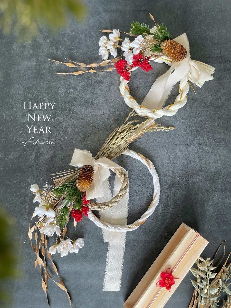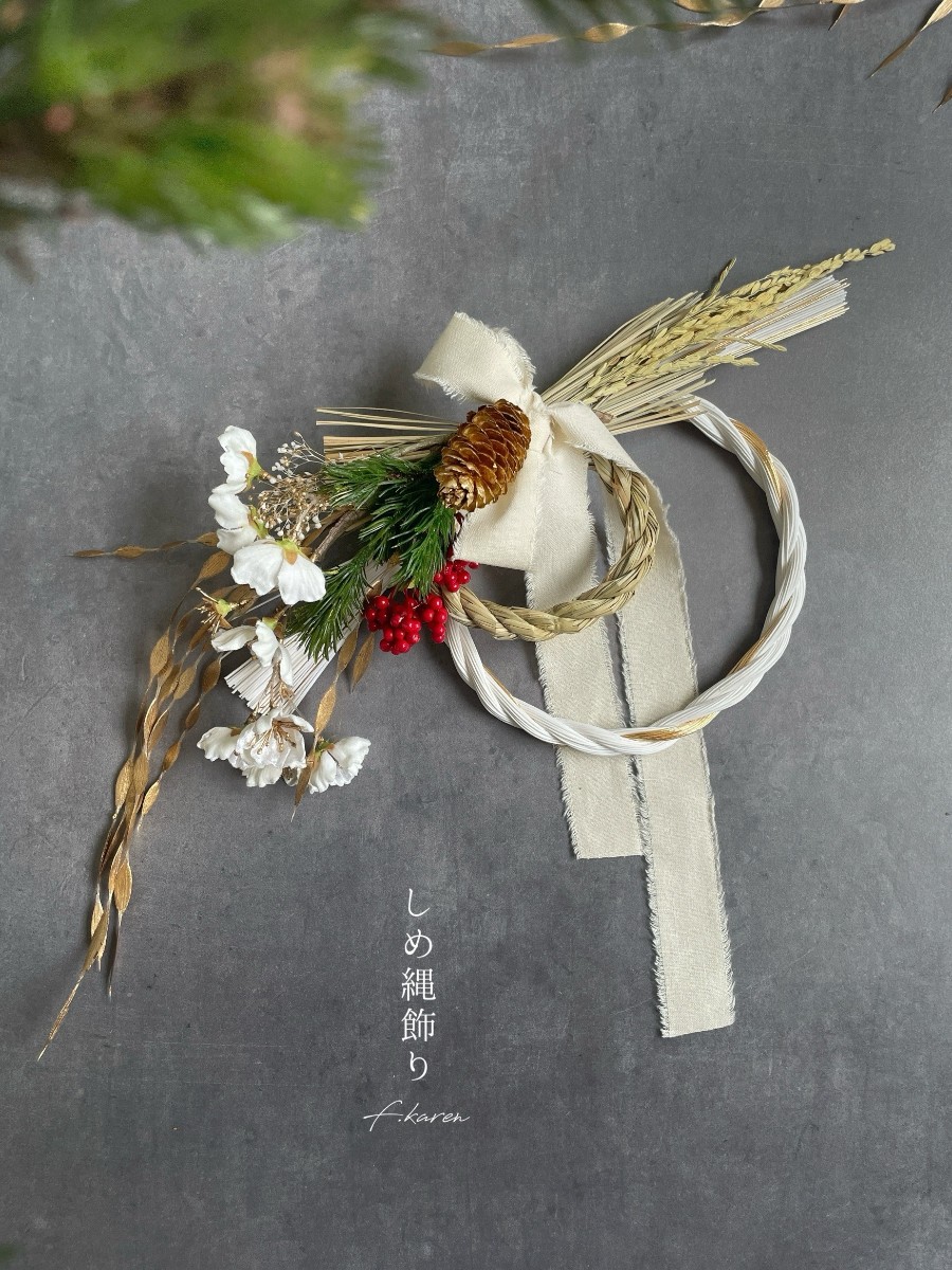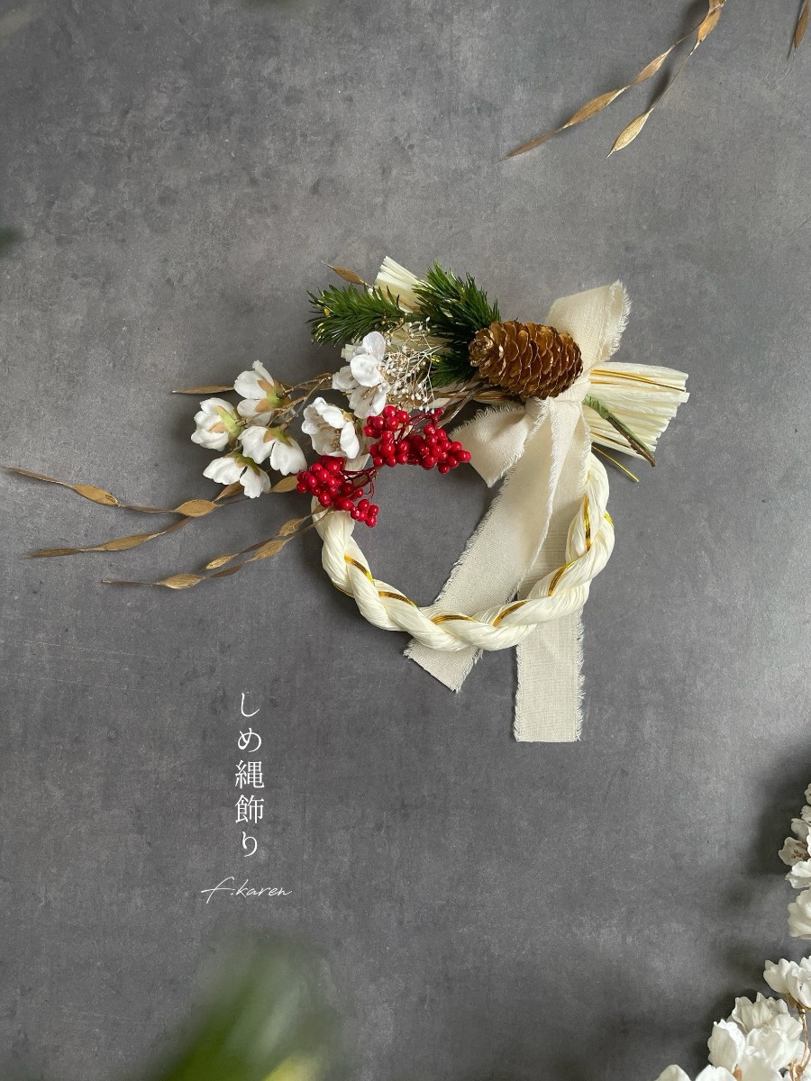 お正月後、しめ縄は処分し、スワッグは飾れるよう花器も準備しました