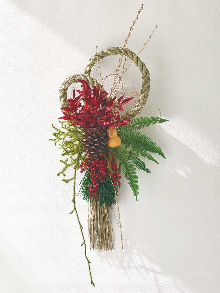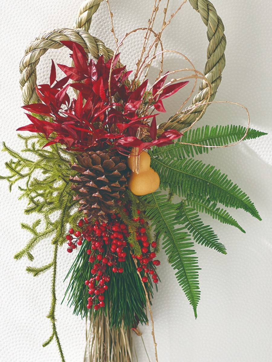 ヒカゲノカズラや山シダ、松などお正月におすすめの素材をつかって。