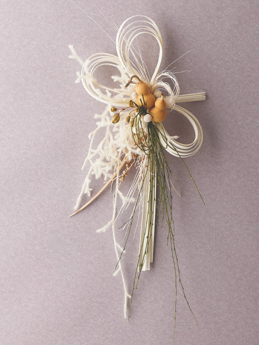 白を基調とした優しい印象のお正月飾り。