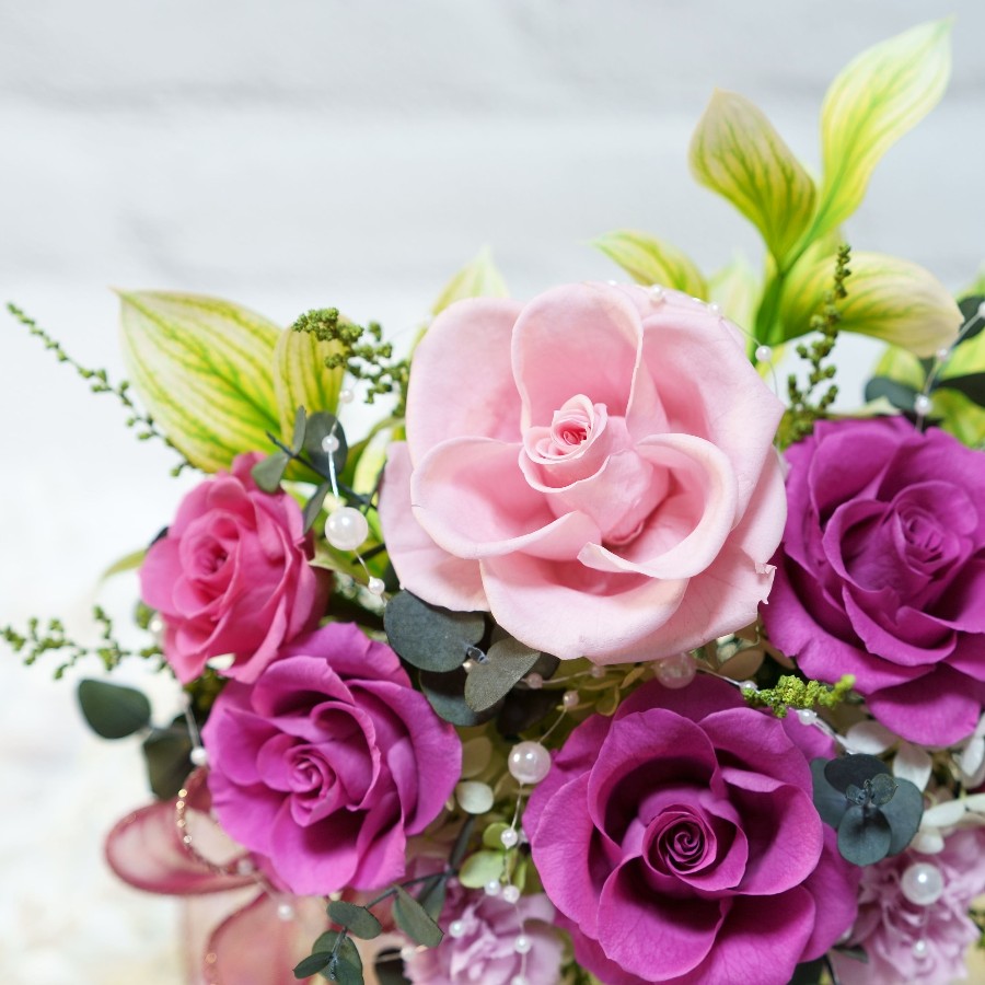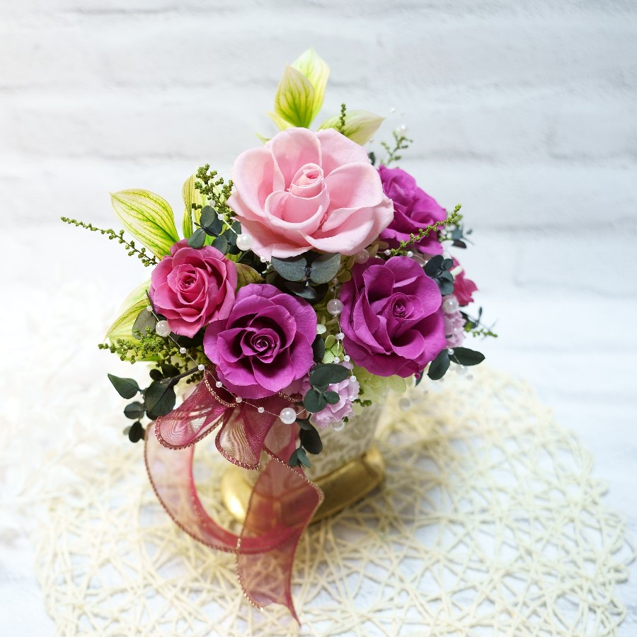プリザーブドフラワーローズを使用した、エレガントでナチュラルなアレンジメントです。