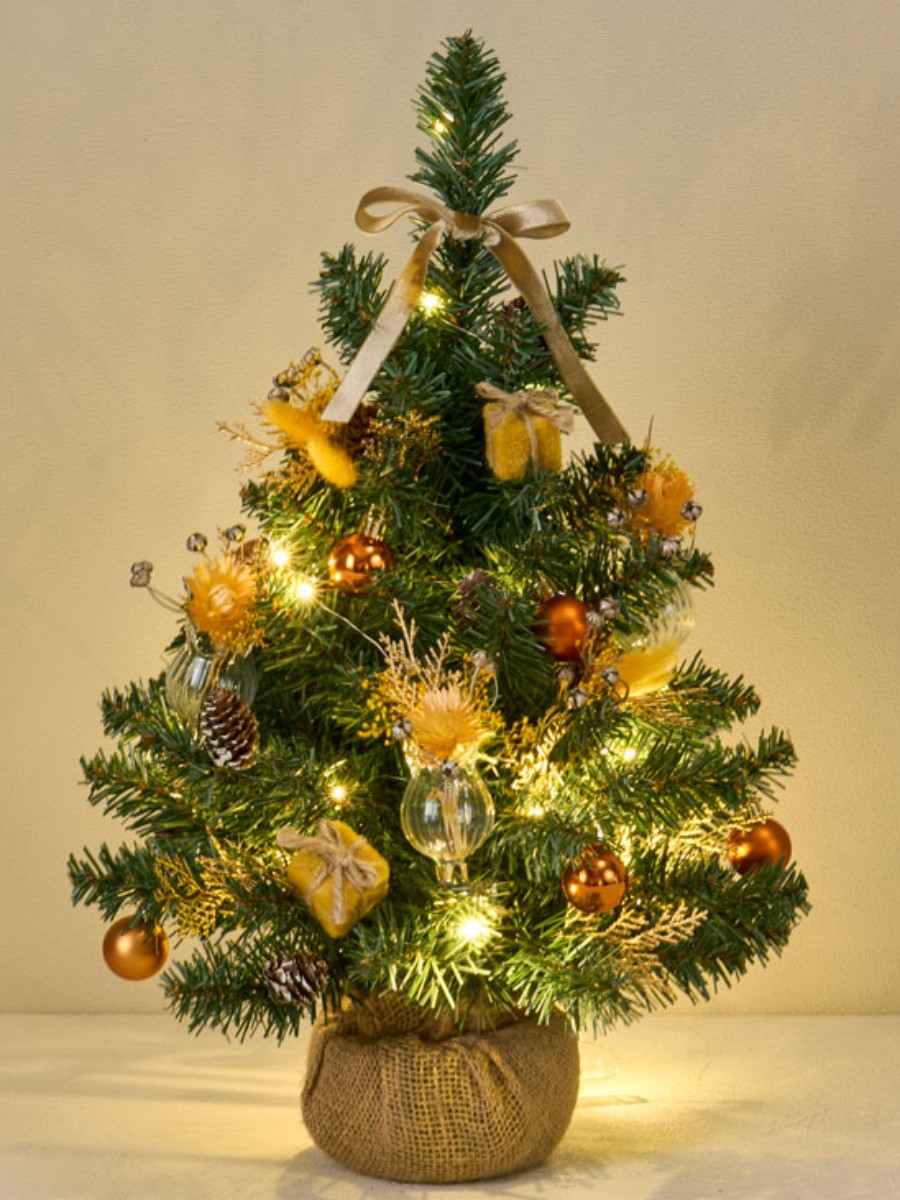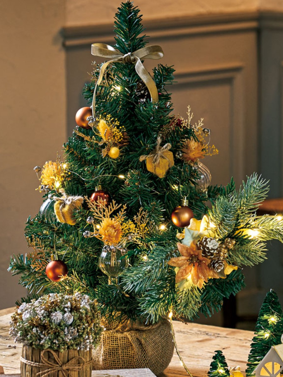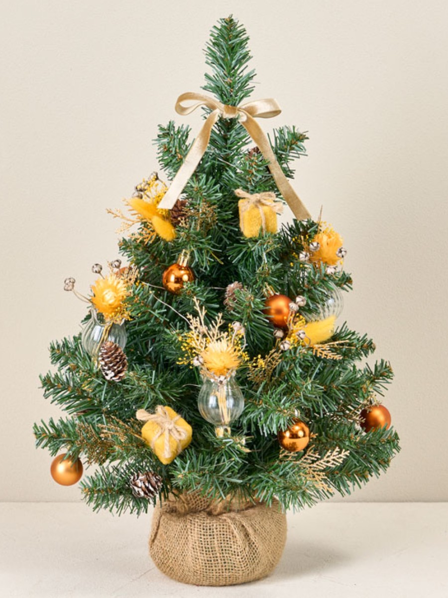 今年のクリスマステーマカラー「ハニーイエロー」に色合わせし、オレンジ系のオーナメントで黄色とのグラデーションを作り、優しい光の電飾で温かみのあるツリーに仕上げました。