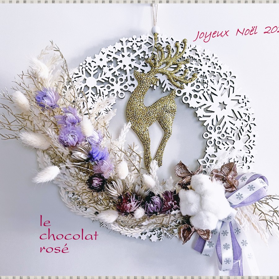 ふわっとしたコットンの実や、ラブリーな雪の結晶柄のリボン、