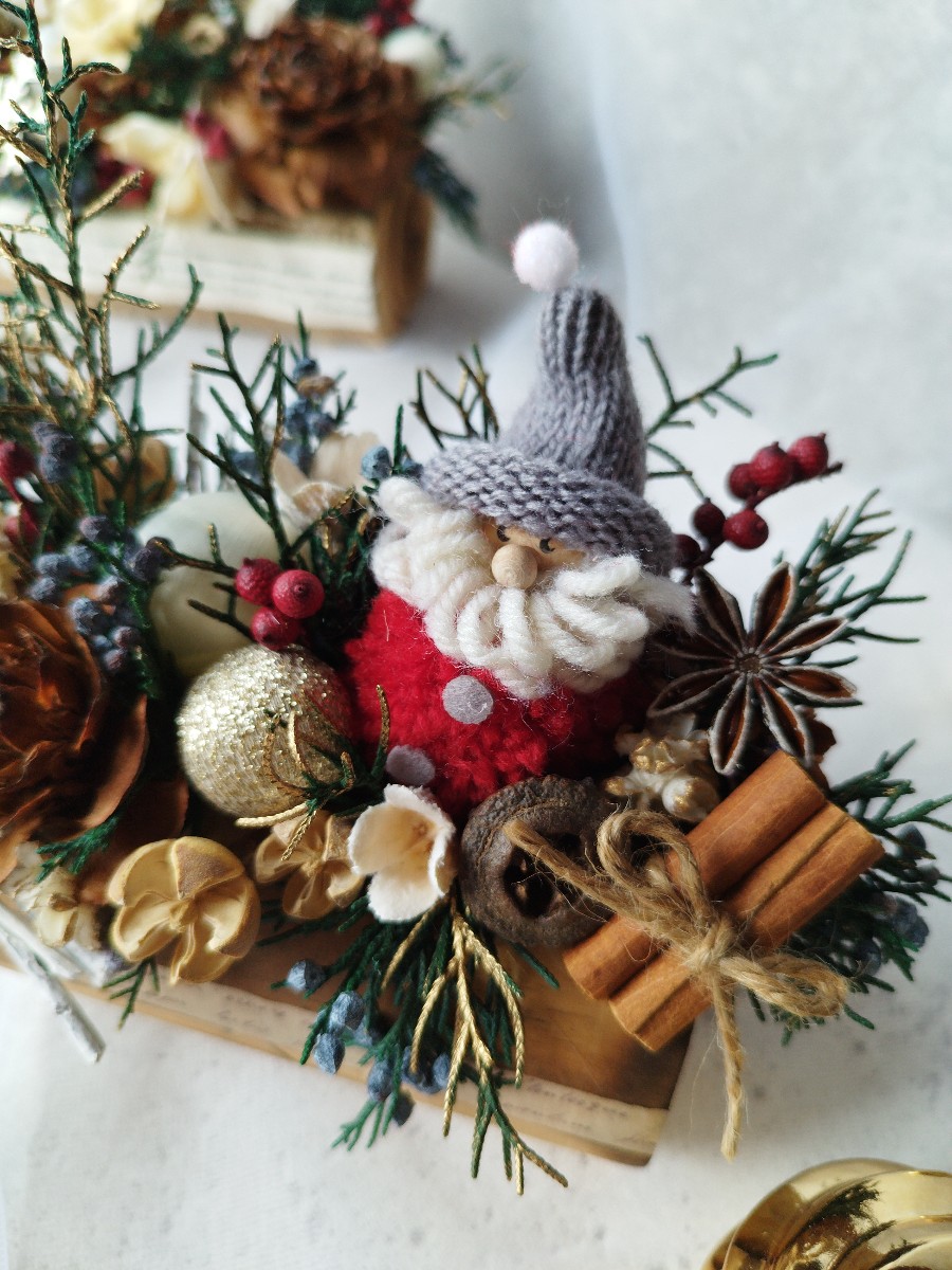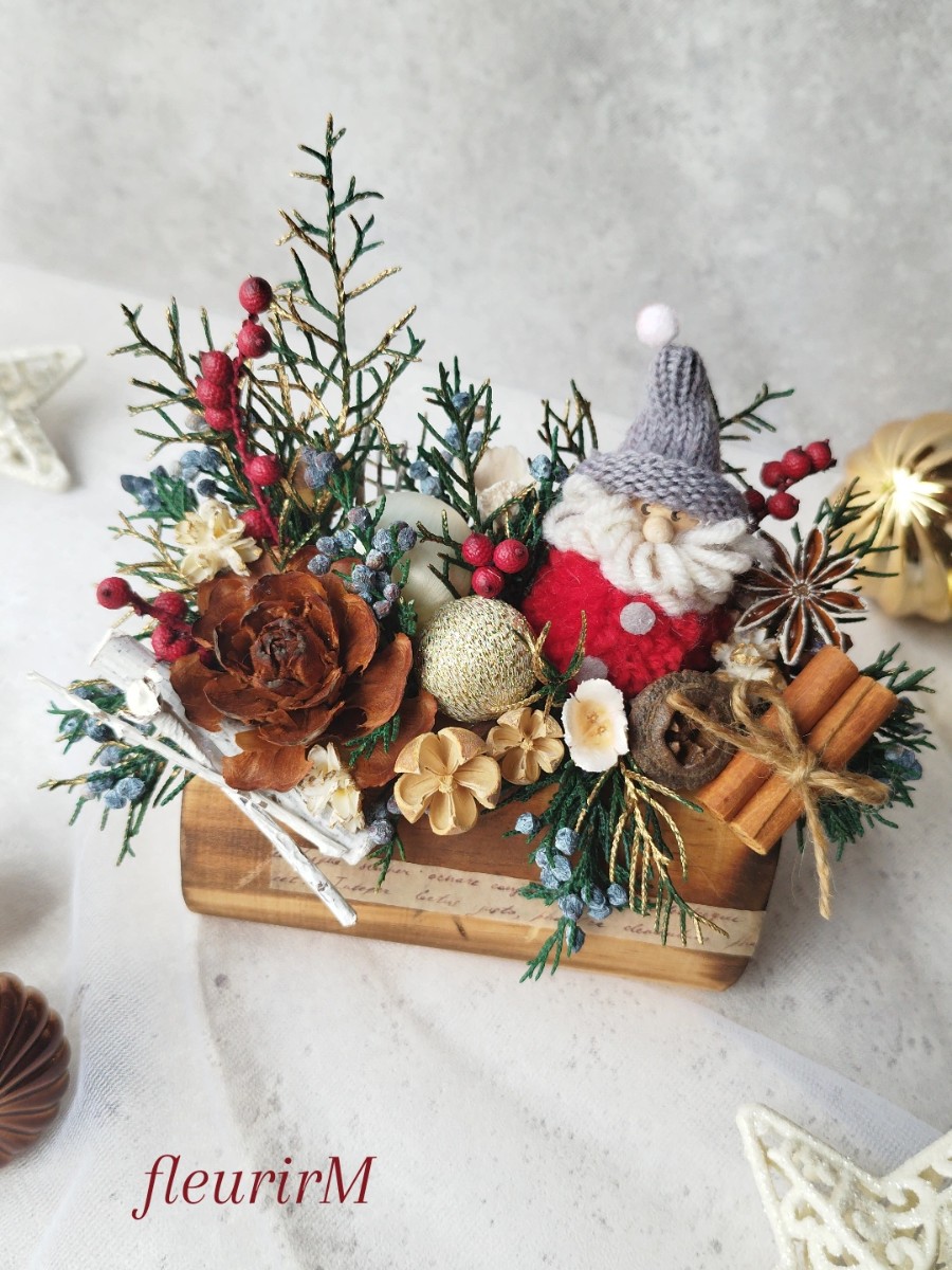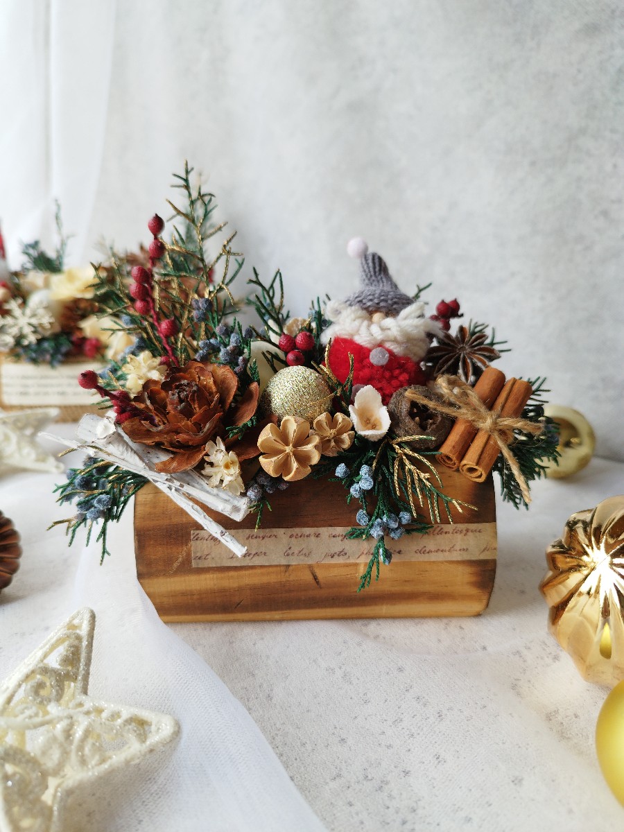 ポプラの木の切り株に、天然素材の木の実やプリザーブド加工のグリーンをたっぷりと.。.:*♡