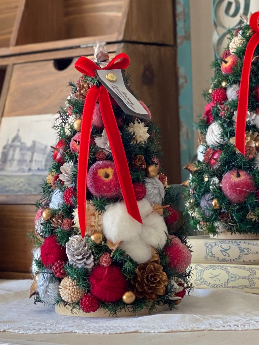 今年はベルベットリボンにハンドメイドの細長いタグをつけてみました。