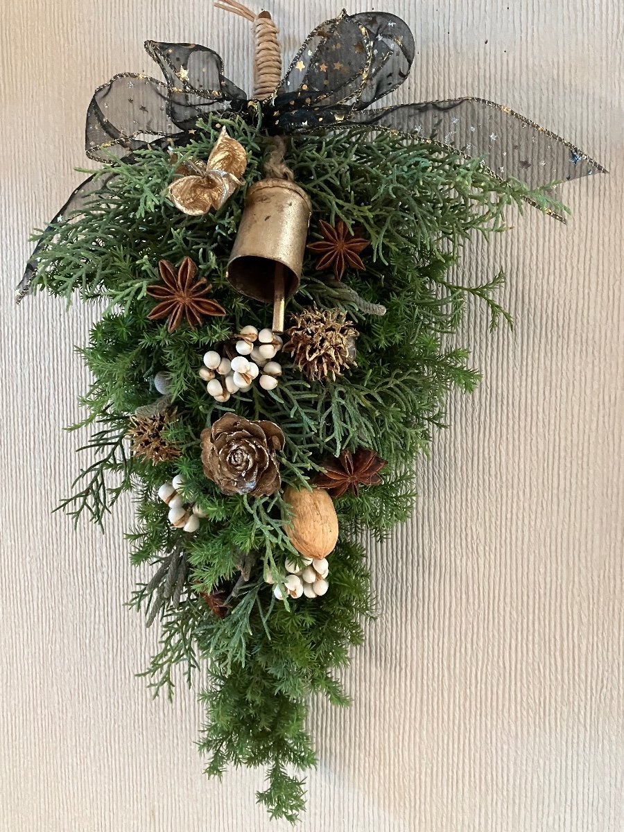 生花のヒムロスギとコニファーブルーアイスでクリスマススワッグを作りました