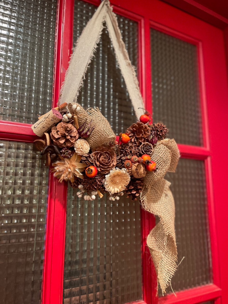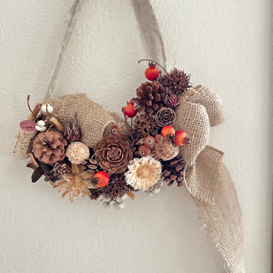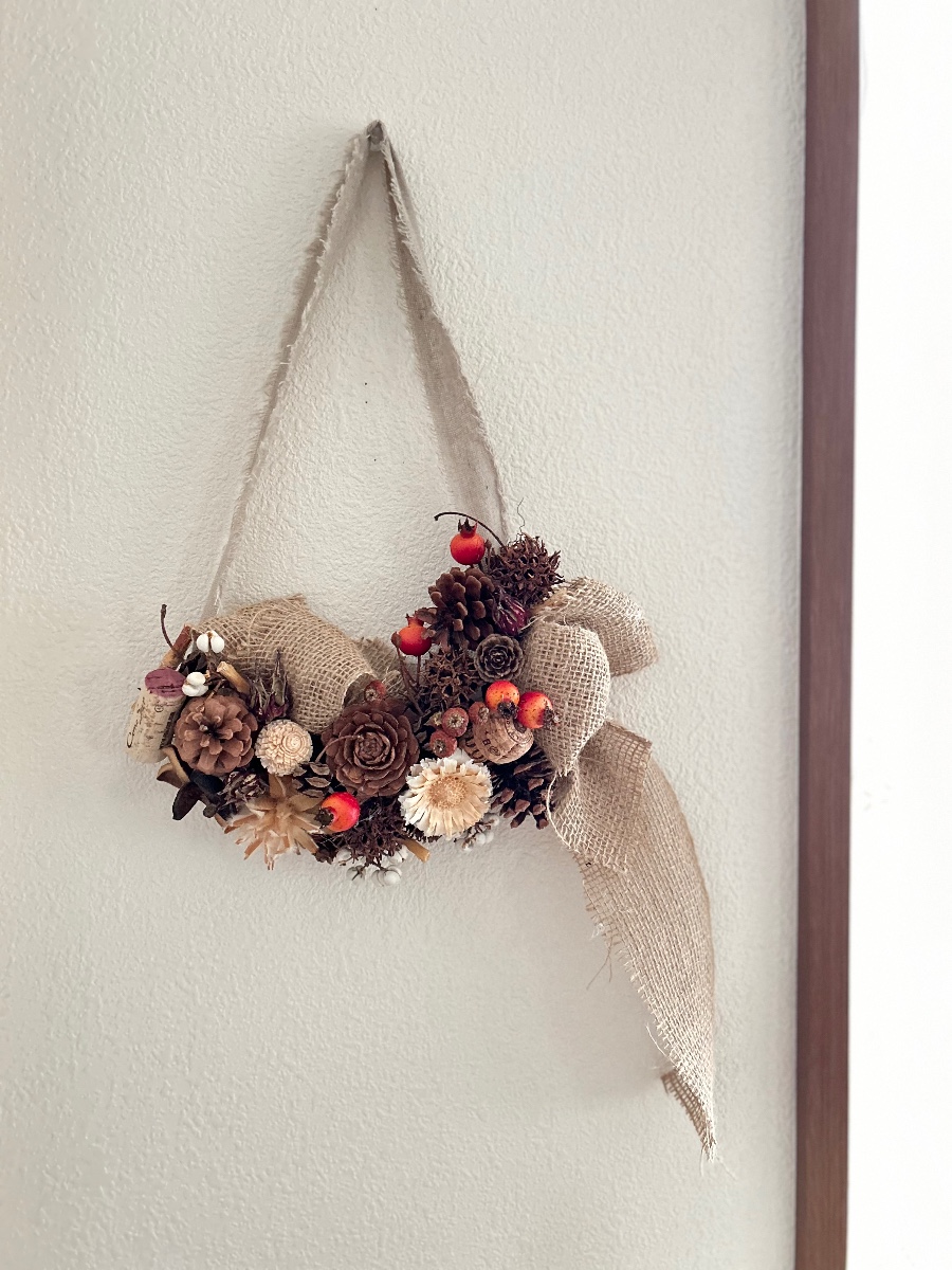 10種類以上の木の実にアーティフィシャルのローズヒップで明るさと動きを出しています。