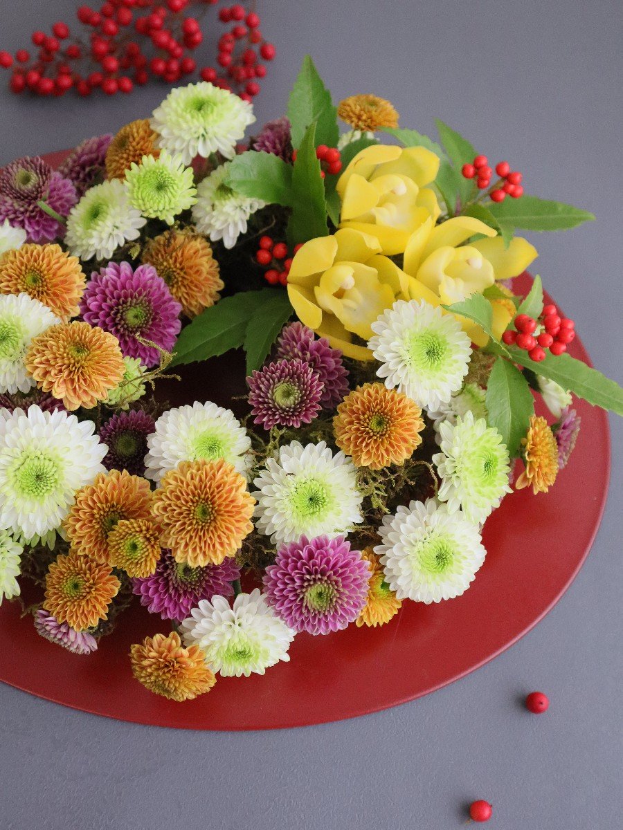 スプレーマムとシンビジュームのお正月リース