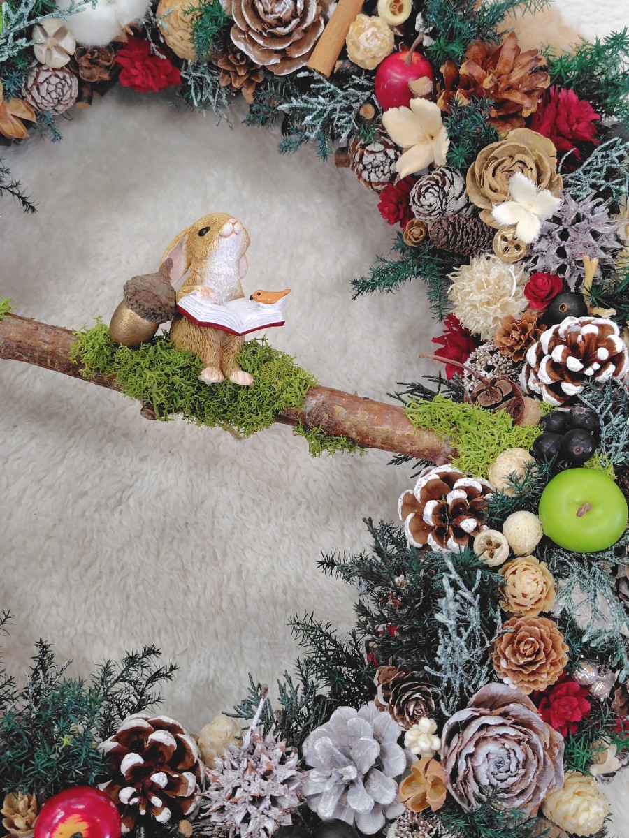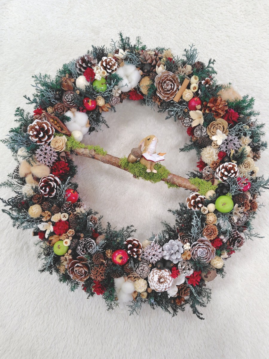 大小様々なたくさんの種類木の実を載せ、大きく、