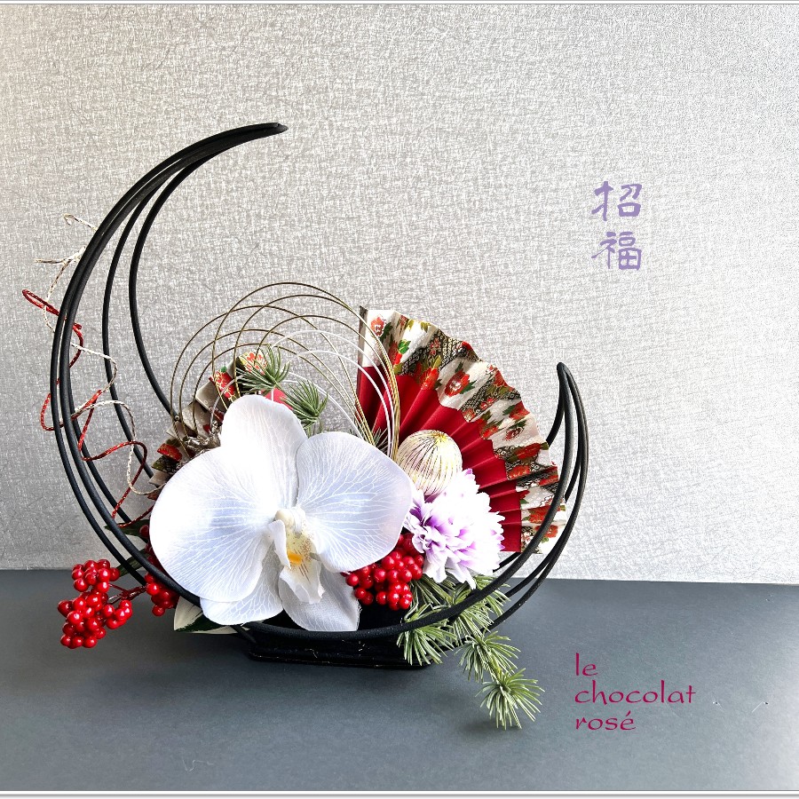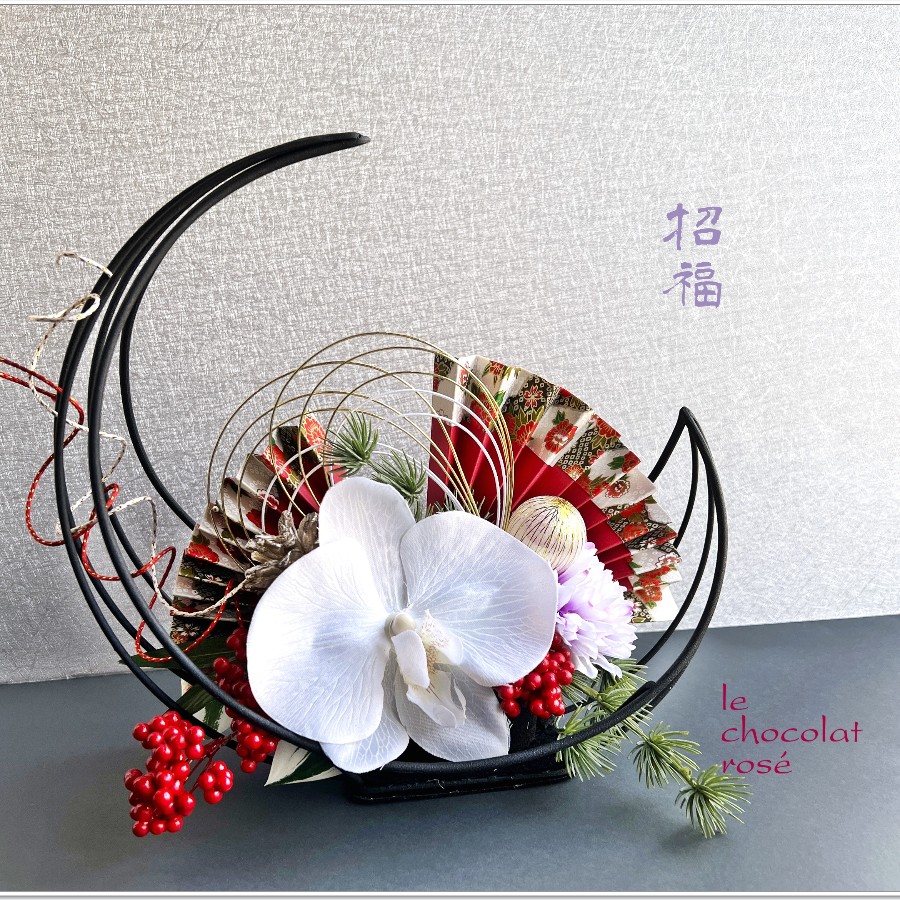 2025仕様の迎春アレンジ<緋扇>です。