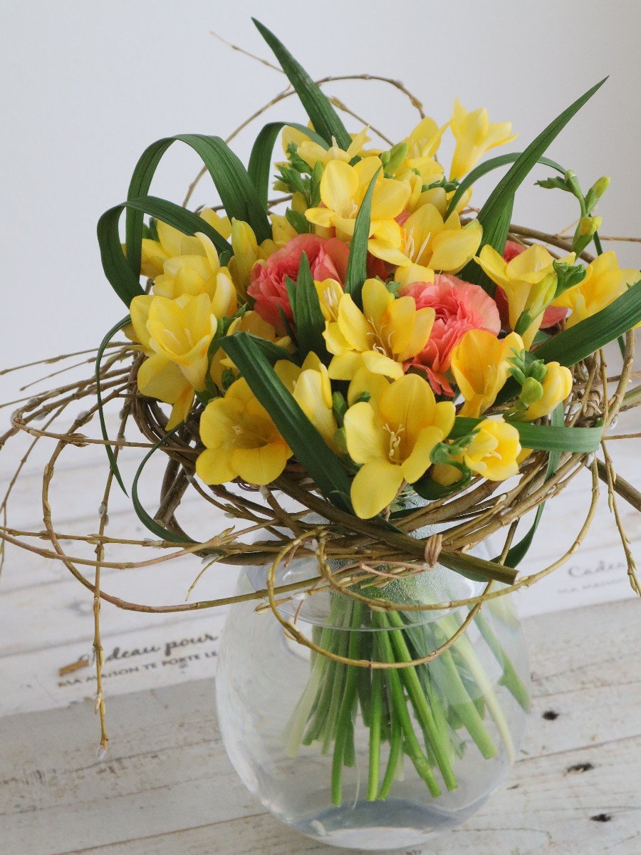 花を上から差し込みブーケにまとめる