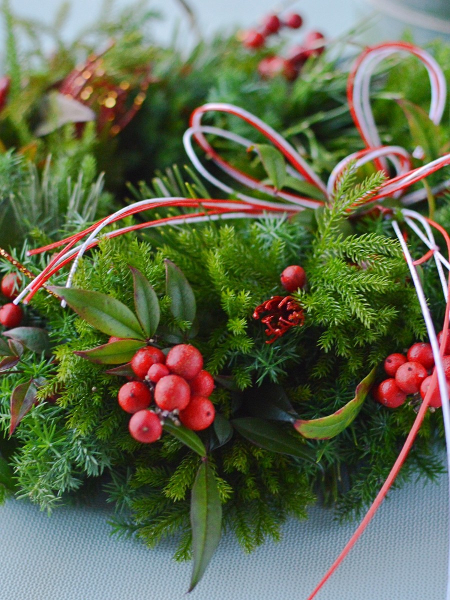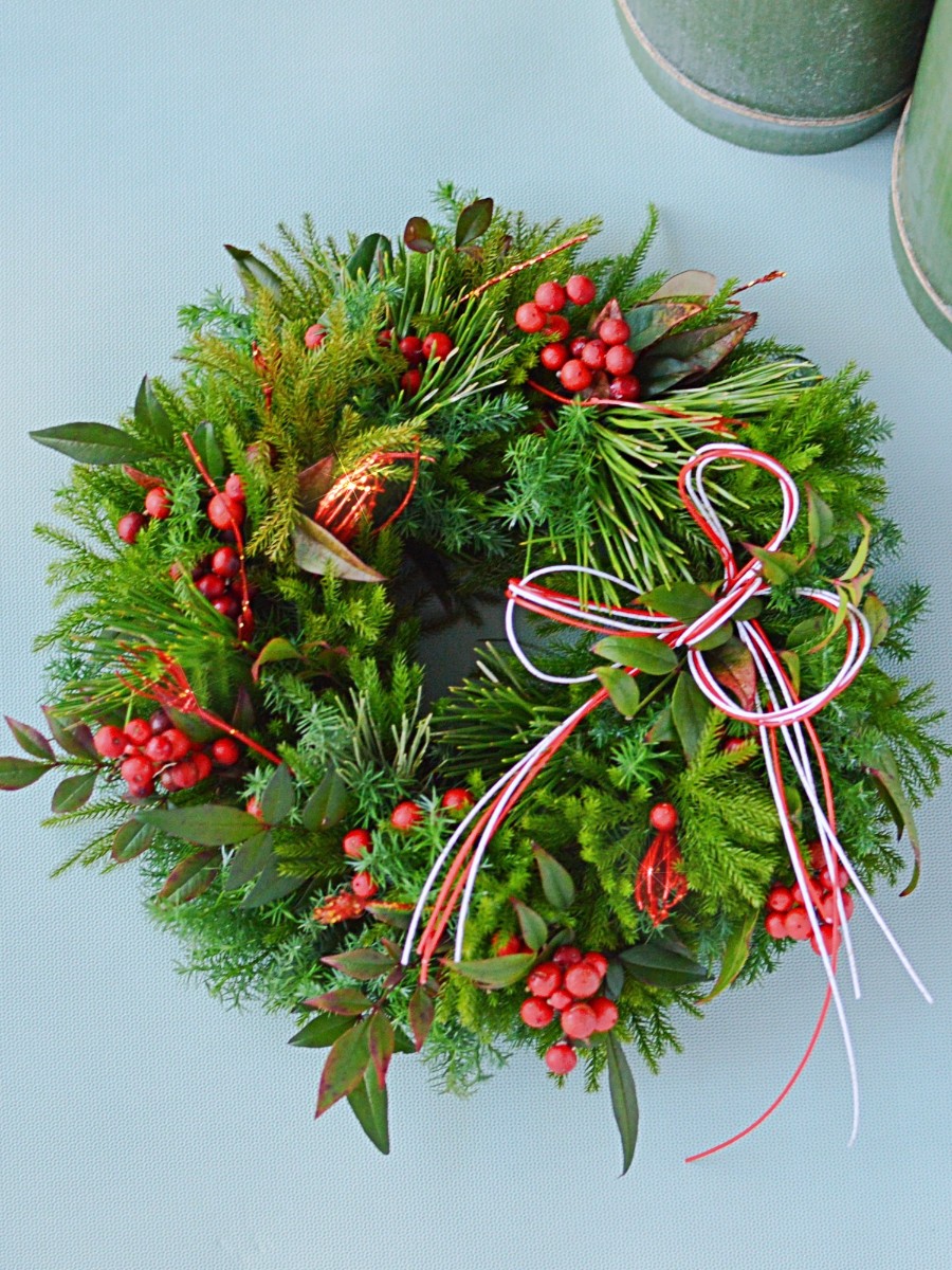 紅白の水引を添えたお正月リース