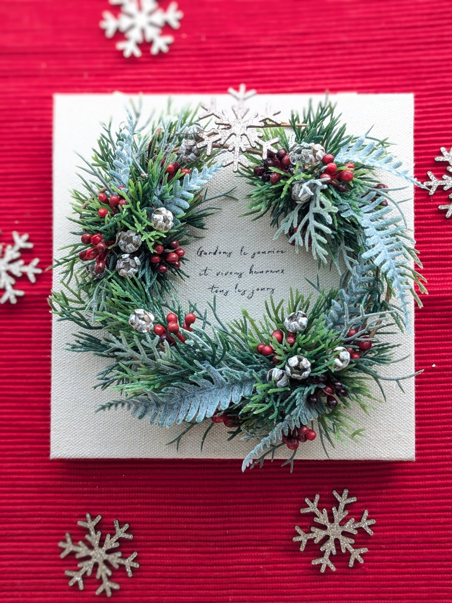 キャンバスアレンジのXmasリースです。