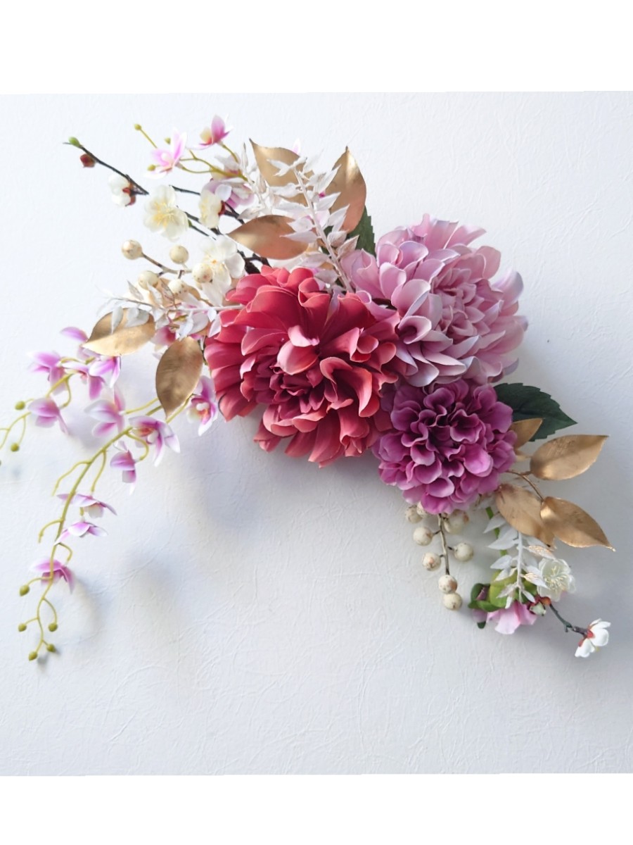 やさしい色合いの芍薬をメインに、オーキッドや梅の花を、華やかに組みました。